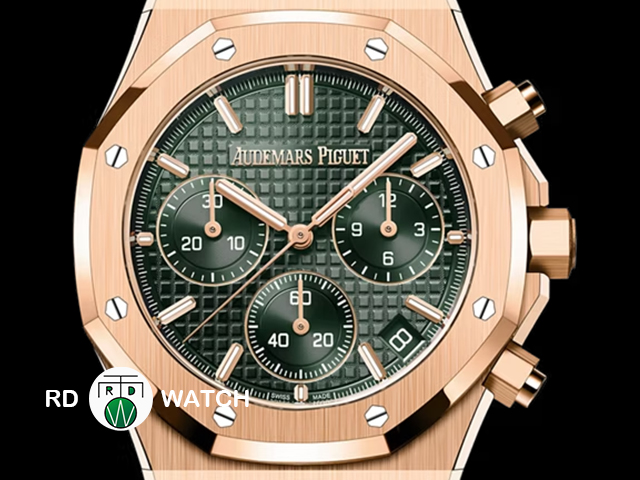 Audemars Piguet 愛彼 AP錶 Royal Oak 皇家橡樹系列 玫瑰金材質 26240OR.OO.D404CR.02 軍綠色面盤 搭配新款18K玫瑰金AP字樣「按壓式」折疊扣 飛返計時功能