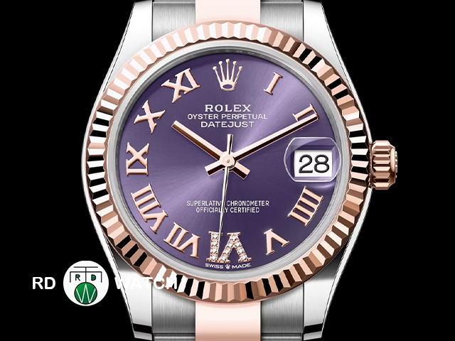 ROLEX 勞力士 蠔式日誌型 DATEJUST LADY 278271 玫瑰金半金 茄紫色錶面 鑲11顆鑽石的特大羅馬數字VI