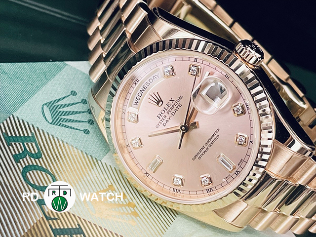18k玫瑰金搭配原鑲鑽石玫瑰金色錶面