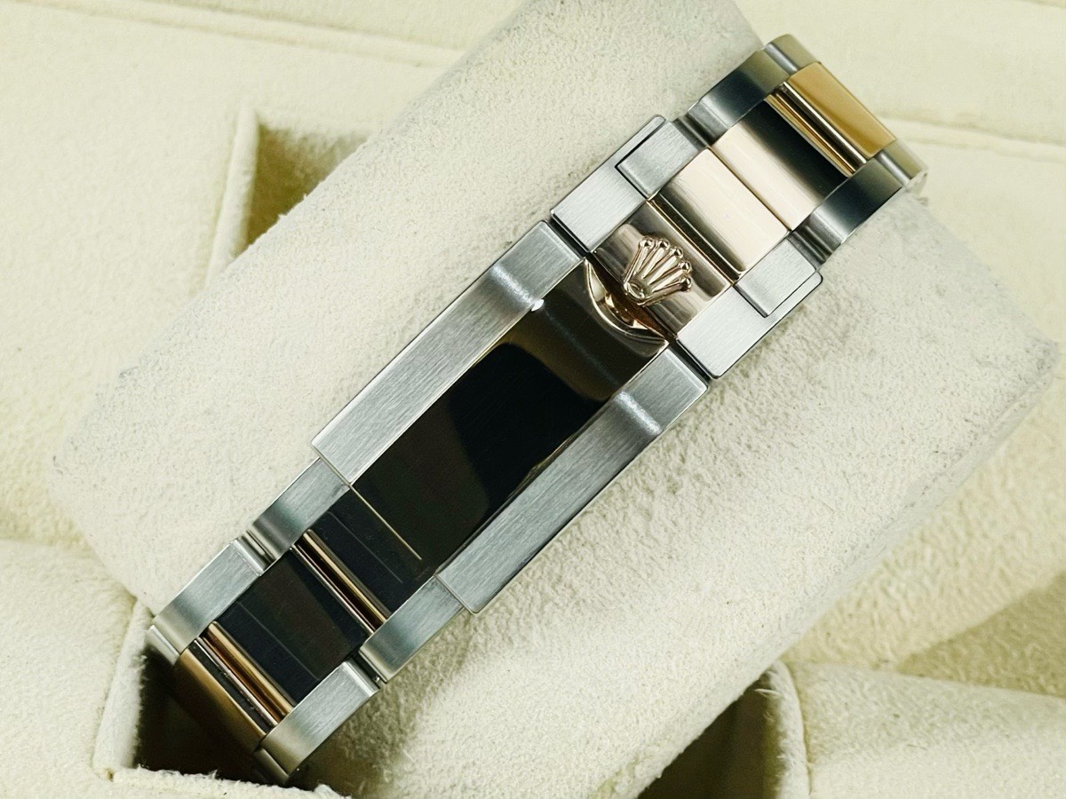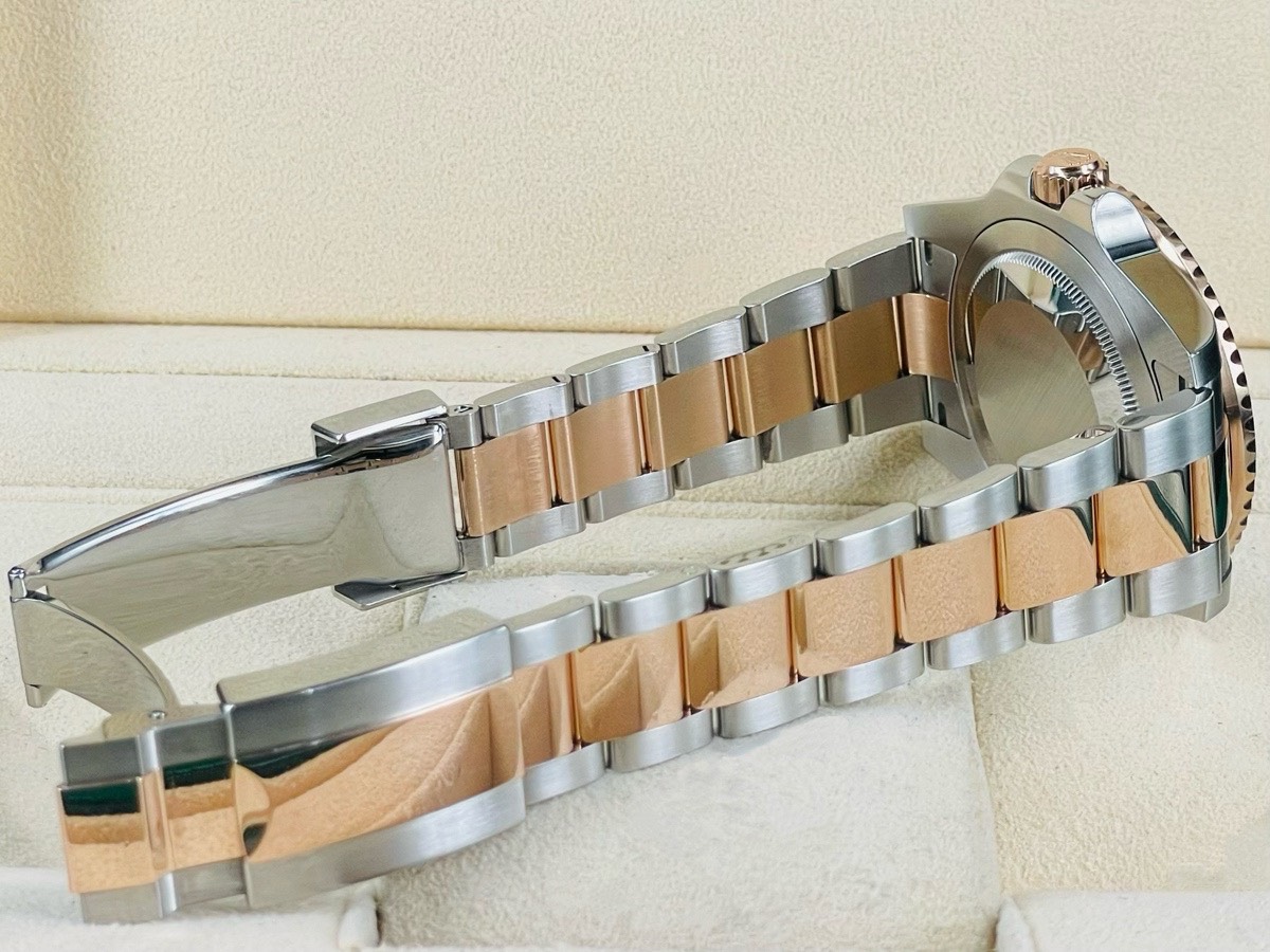 904L精鋼+永恆玫瑰金材質 / 黑色面盤 / 夜光時標及賓士指針 / 陶瓷黑啡雙色圈 / 藍寶石水晶玻璃鏡面