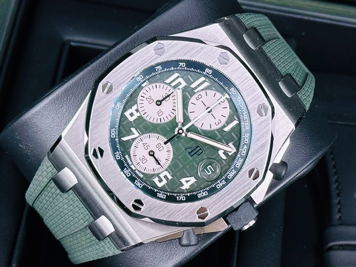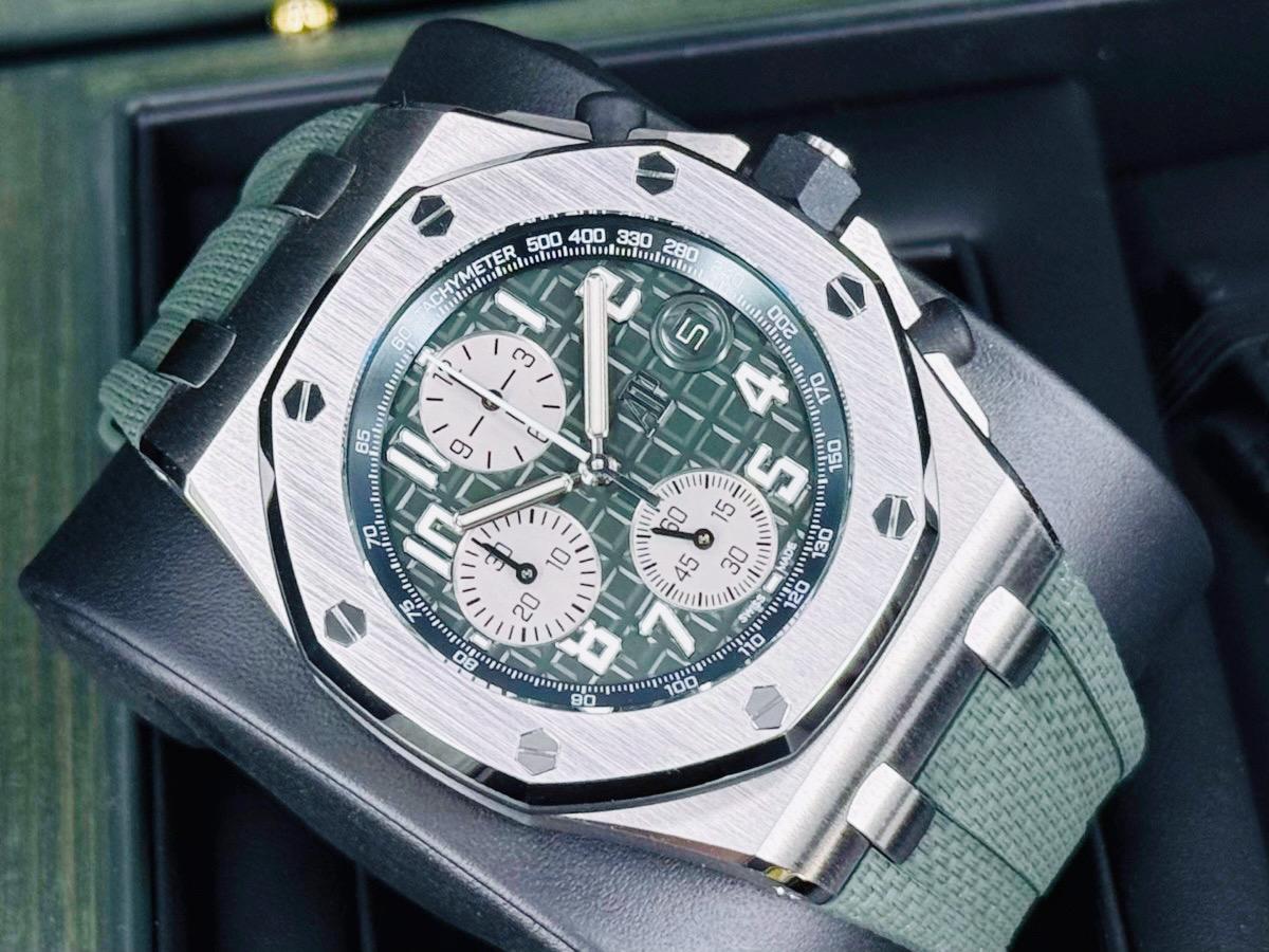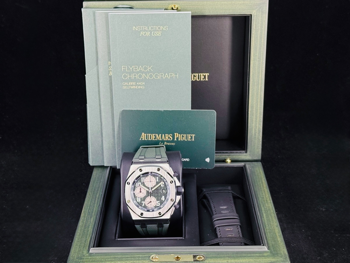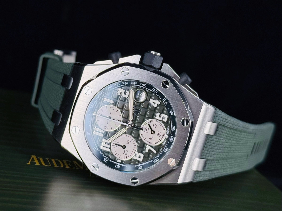 Audemars Piguet AP錶 愛彼 Royal Oak Offshore 皇家橡樹離岸型 飛返計時碼錶 26238TI 鈦金屬材質 綠色面盤 軍綠色款 新式快拆錶帶 搭載全新4401機芯 42mm