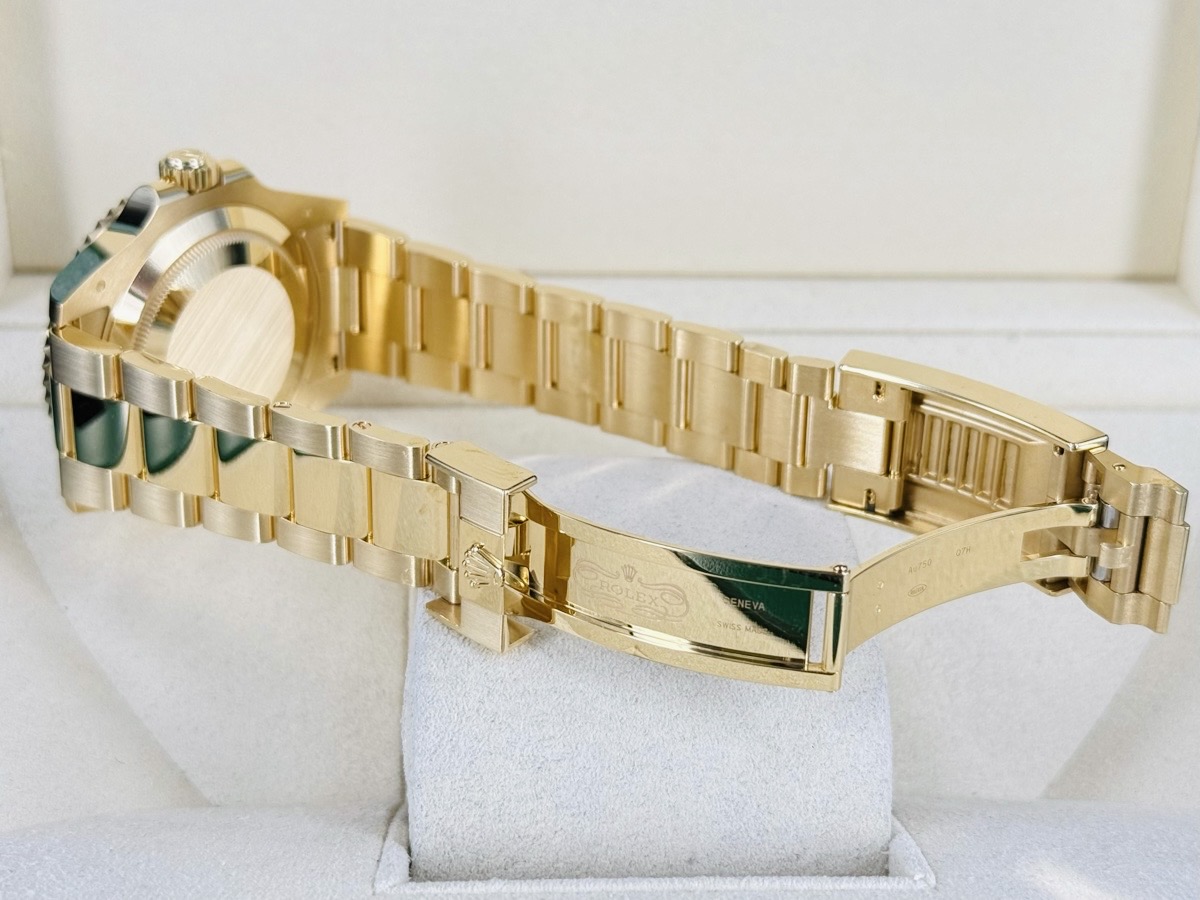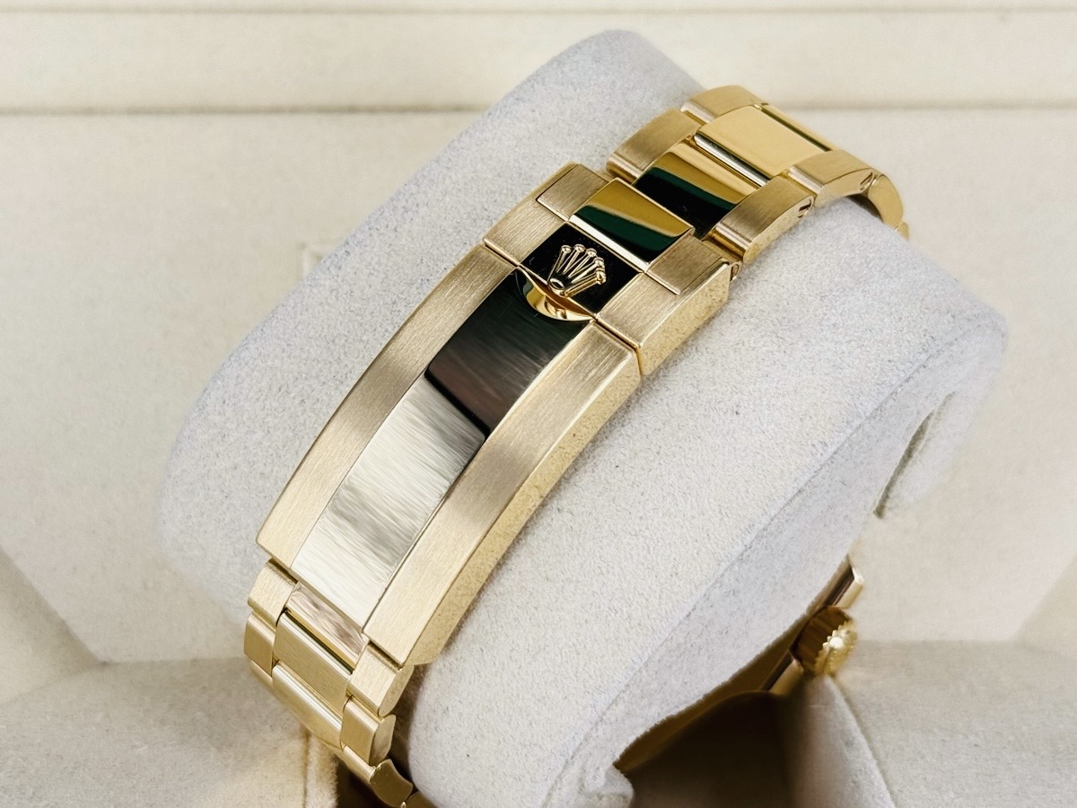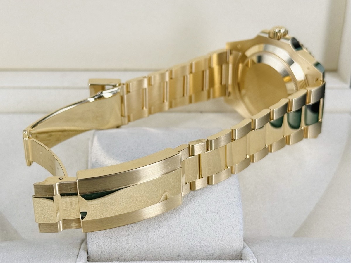 18K黃金材質錶殼、錶帶、快調式摺疊扣 / 藍色放射紋面盤 / 夜光賓士指針、時標 / Cerachrom藍色陶瓷單向旋轉錶圈 / 旋入式錶冠 / 抗磨損藍寶石水晶玻璃 / 防偽內圈