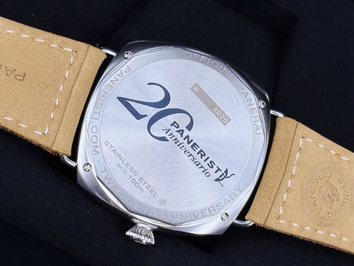 PANERAI 沛納海 OFFICINE Radiomir Paneristi 45mm PAM02020 經典的三明治設計 6點方向刻印Paneristi網站的Logo以及”2000-2020”的年份紀念數字 錶背實底蓋刻印藍色20週年紀念字樣 2020年保卡 限量1020只 |