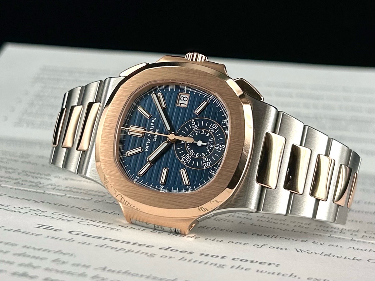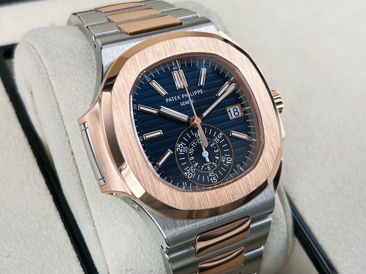 玫瑰金半金 已停產 藍色漸變面盤 新式可延長錶扣 同軸計時碼錶 新款PP印記