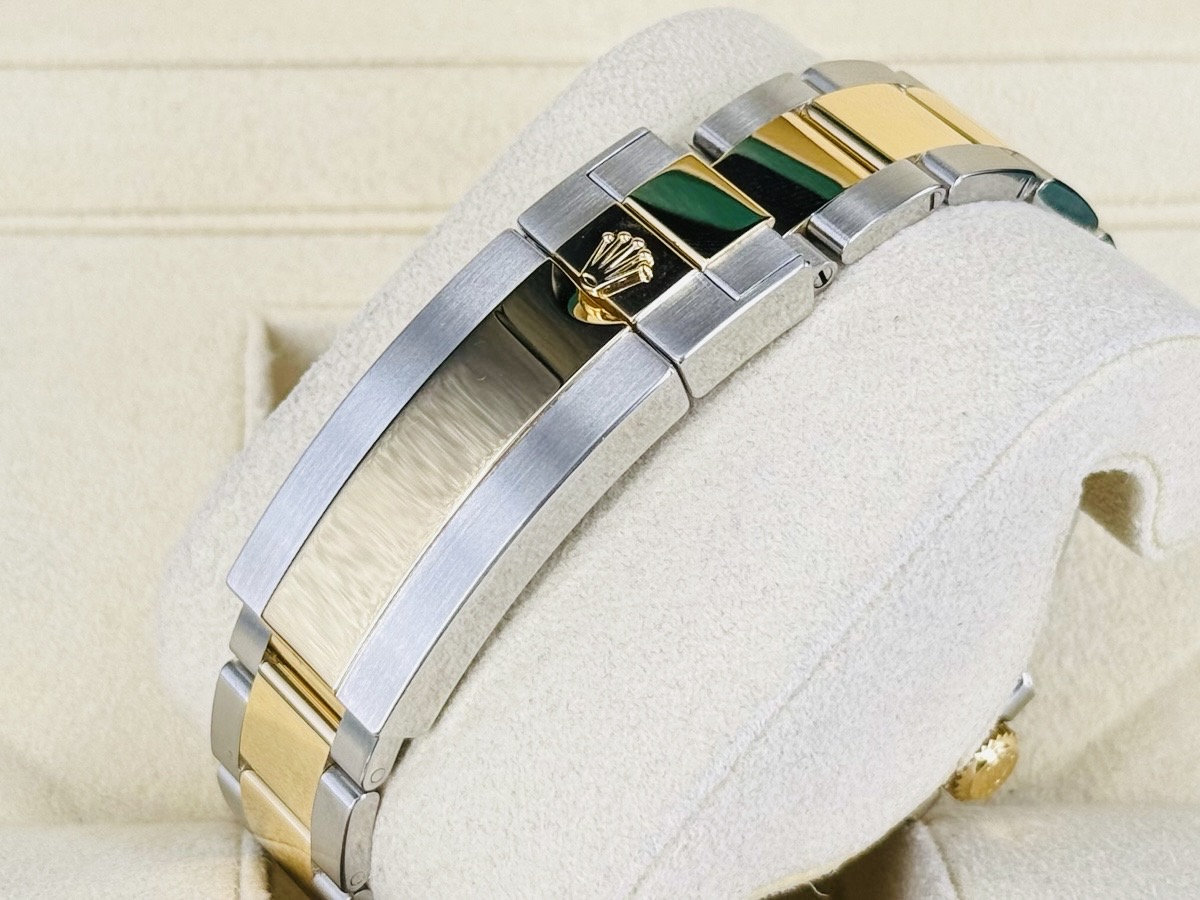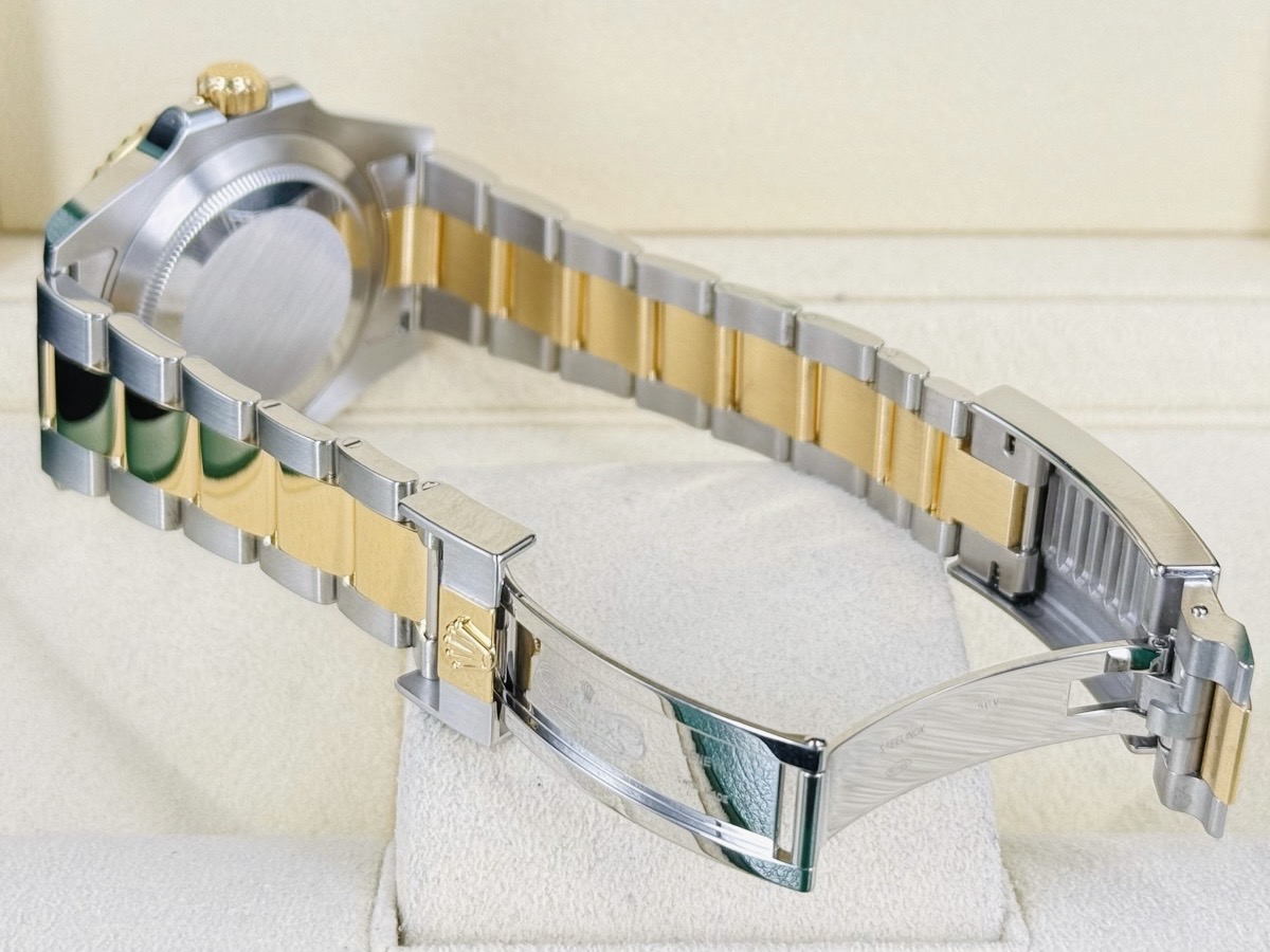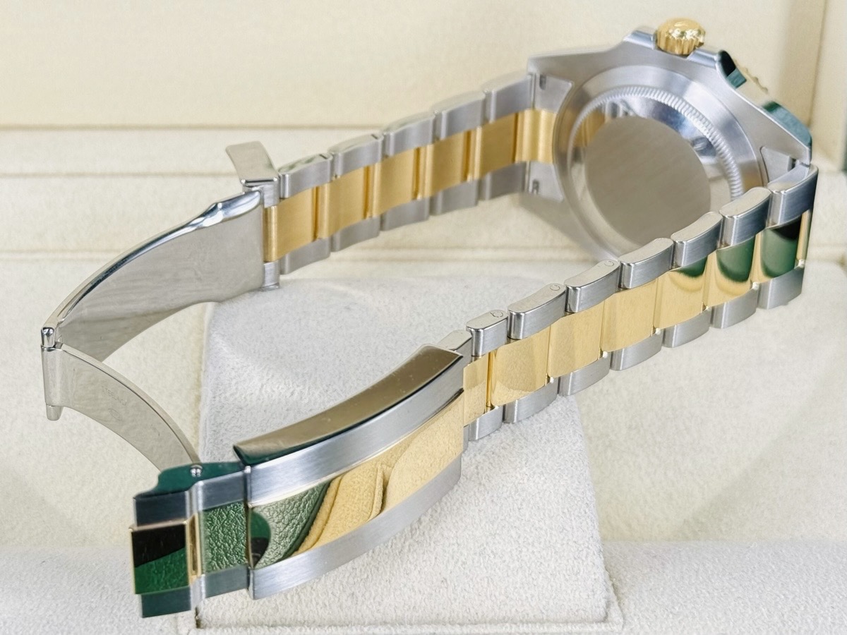 904L精鋼+18K黃金材質錶殼、錶帶、快調式摺疊扣 / 黑色面盤 / 夜光賓士指針、時標 / Cerachrom黑色陶瓷單向旋轉錶圈 / 旋入式錶冠 / 抗磨損藍寶石水晶玻璃 / 防偽內圈