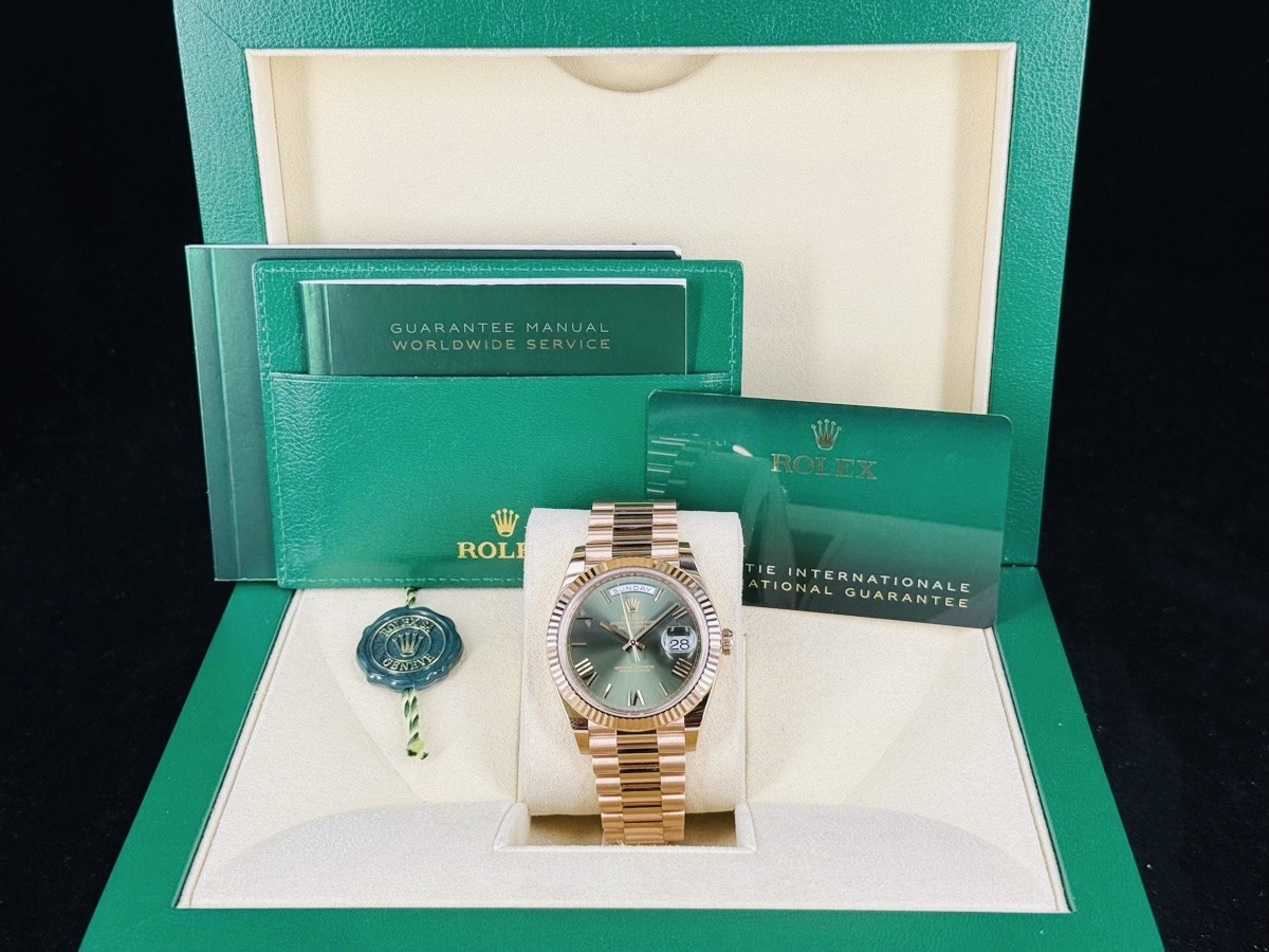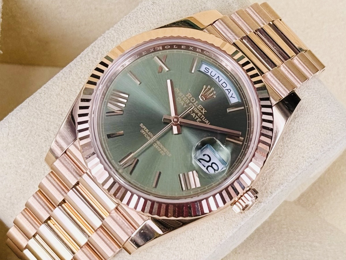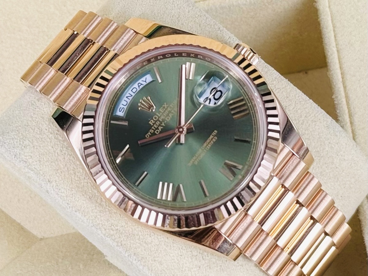 總統錶 橄欖綠色面盤 228235 Day-Date 星期日誌型 永恆玫瑰金材質