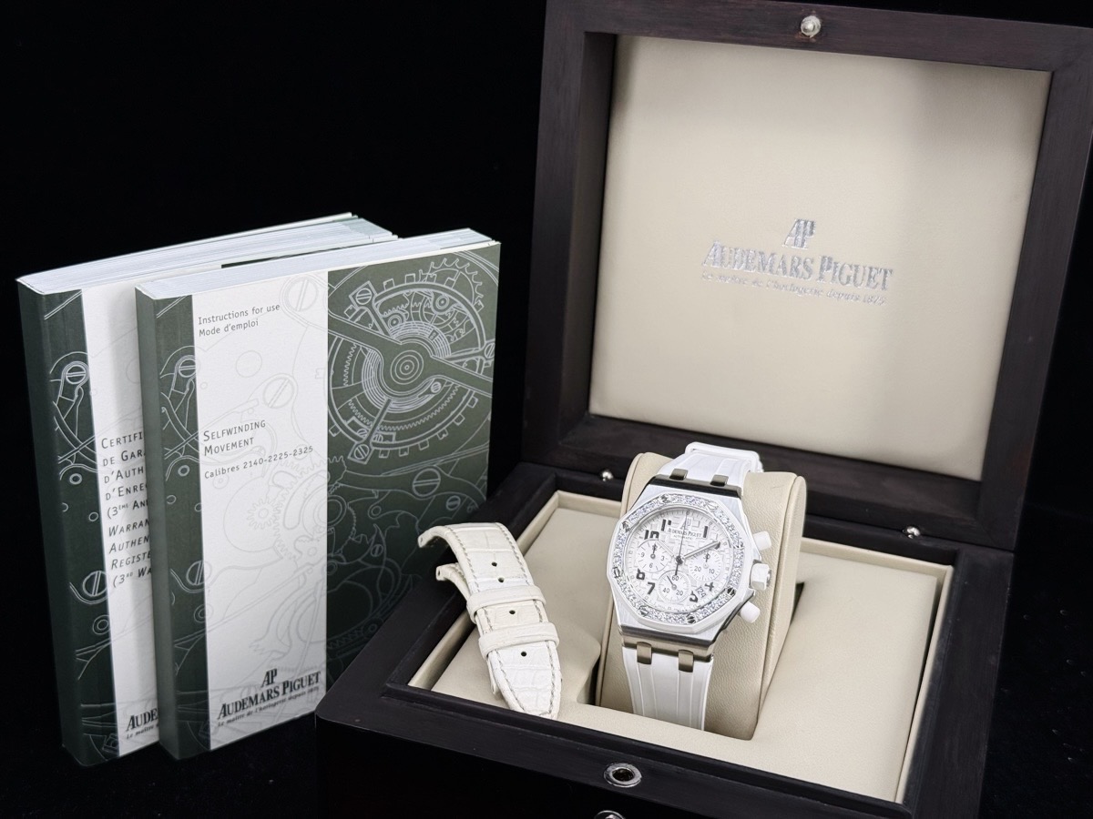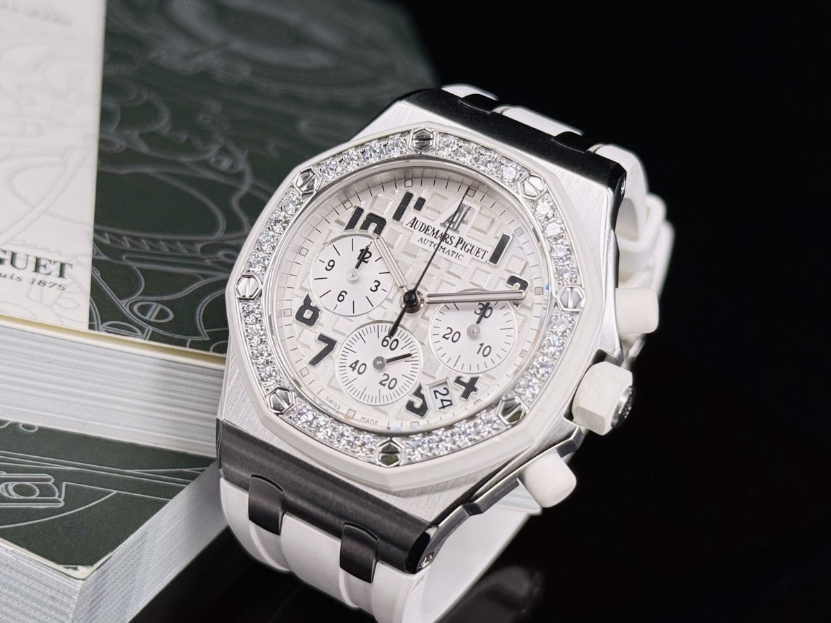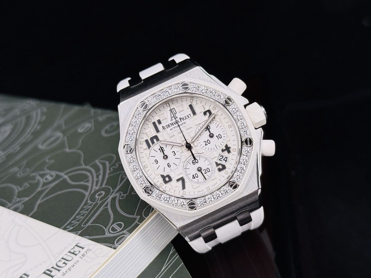 愛彼原廠cal.2385自動上鍊機械機芯 / 時、分、小秒時間指示 / 日期窗顯示、計時碼錶功能 / 防水:50 m