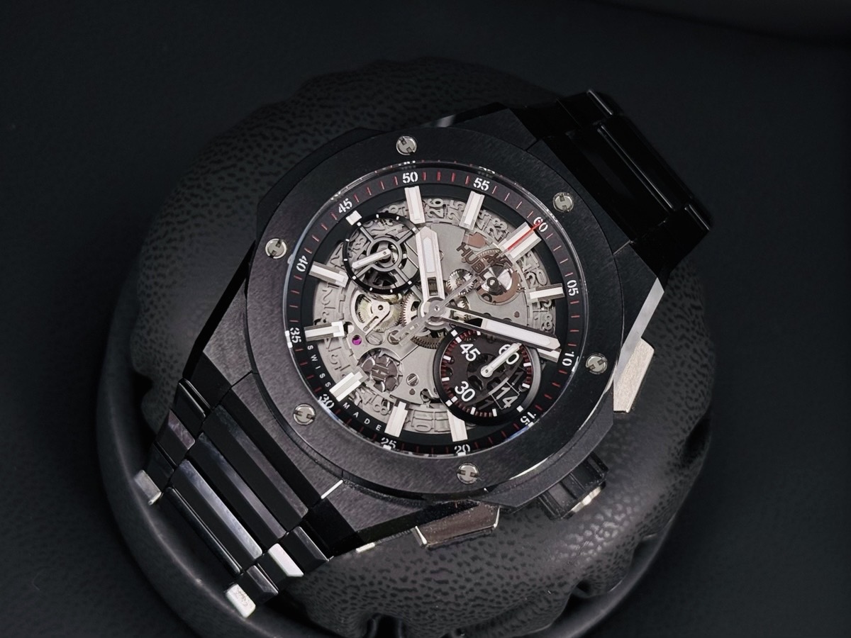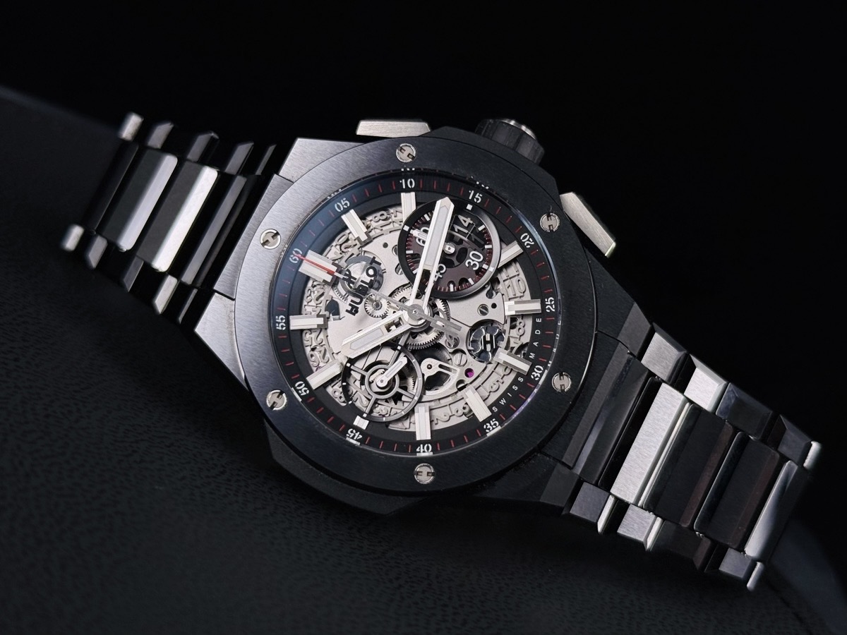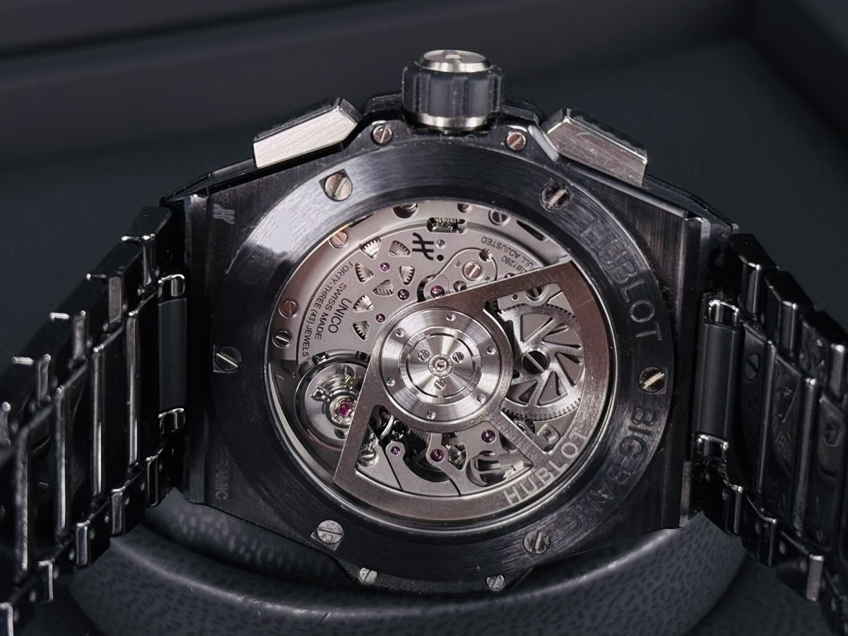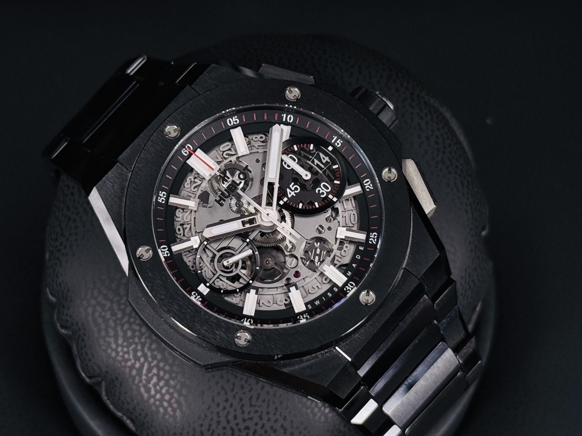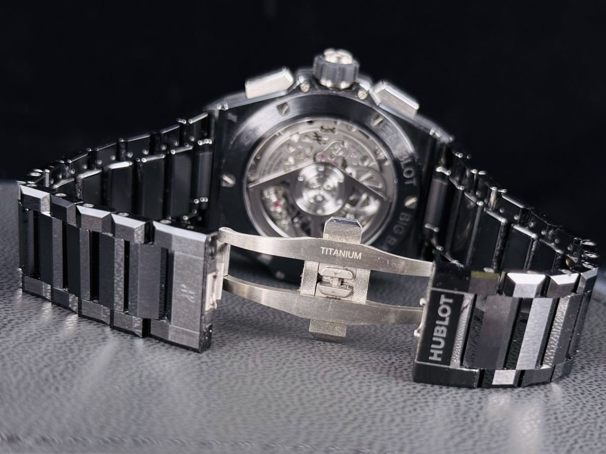 HUBLOT 宇舶Big Bang 451.CX.1170.CX INTEGRATED一體式黑色陶瓷腕錶 啞光黑色鏤空錶盤 飛返計時