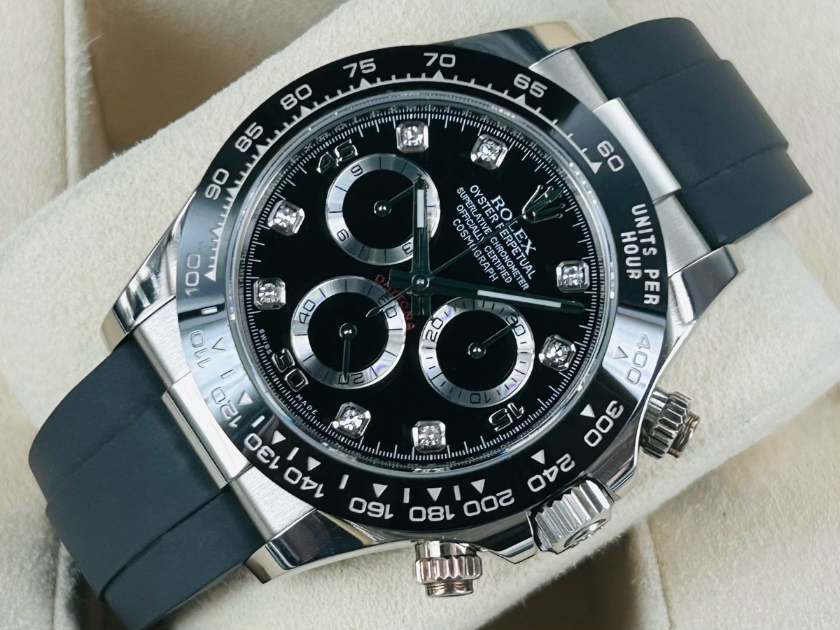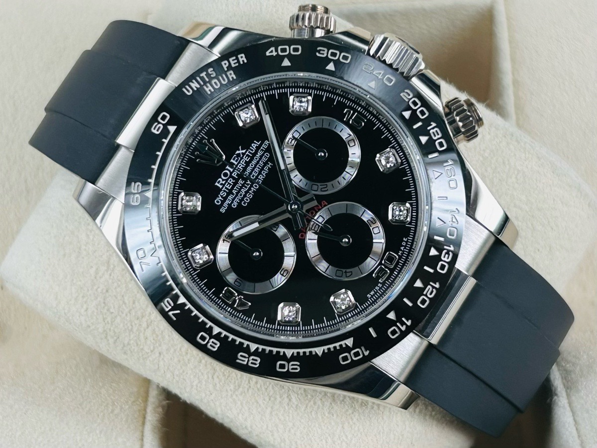 八鑽時標面盤 計時碼表 18K白金材質 陶瓷框 橡膠錶帶 116519G