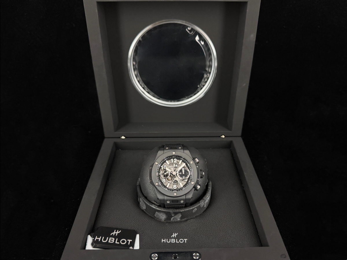 Hublot 宇舶 Big Bang 大爆炸 UNICO 黑色魔力 421.CI.1170.RX 微珠噴砂及拋光黑色陶瓷 雙逆跳裝置 及 導柱輪飛返計時碼錶 <font color=2022年 新式電子保卡">
