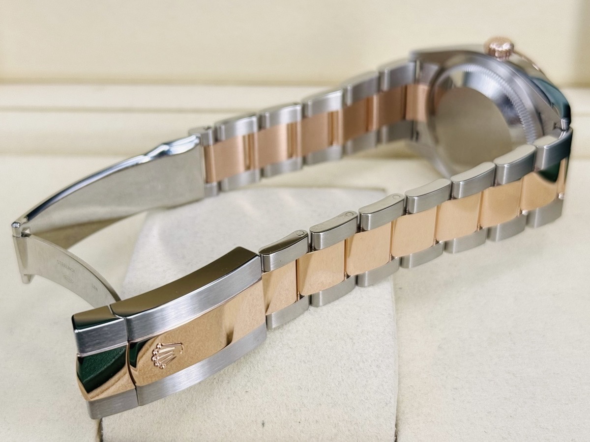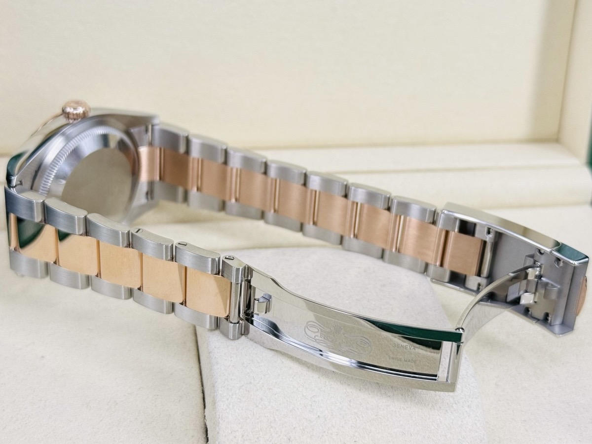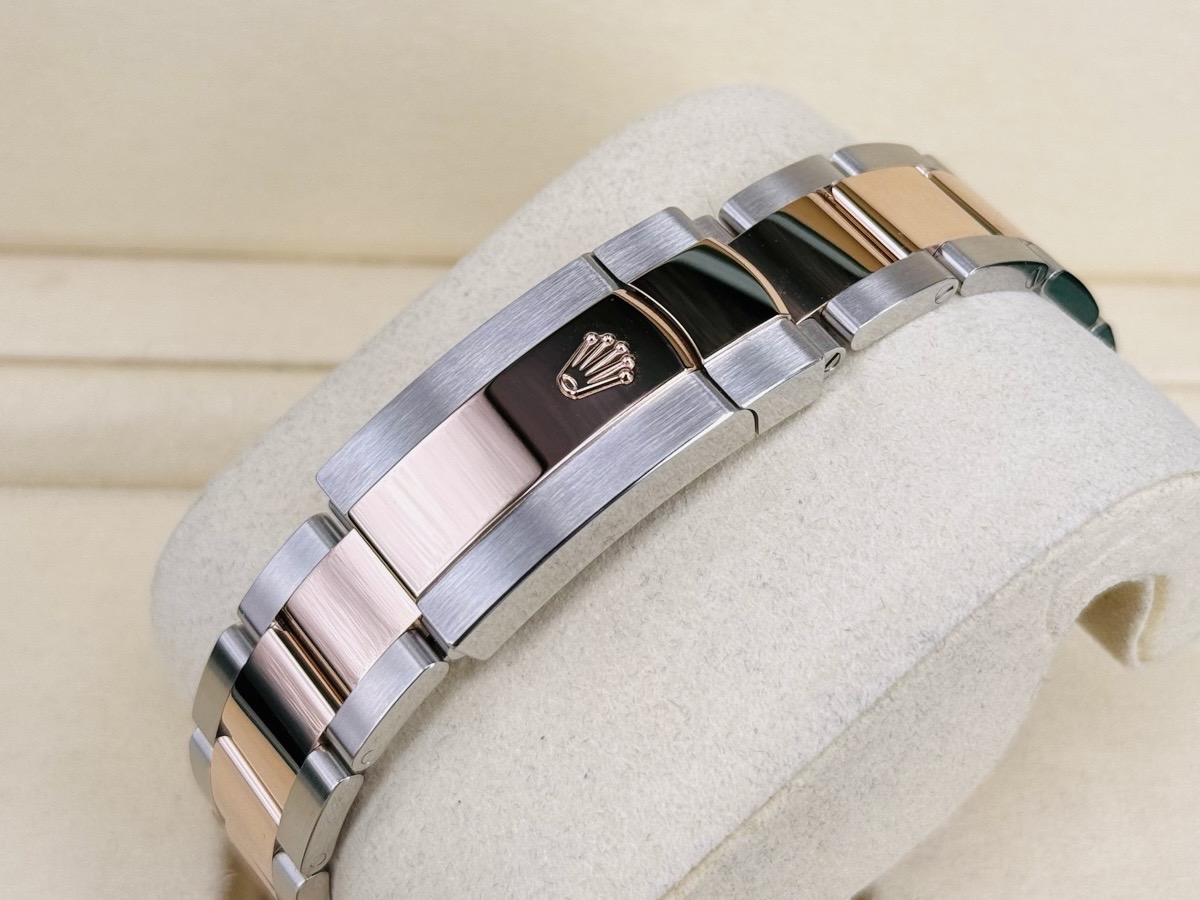 蠔式鋼與18K永恒玫瑰金、摺疊帶扣 / 旋入式錶冠 / 藍寶石水晶玻璃鏡面 / 防偽內圈