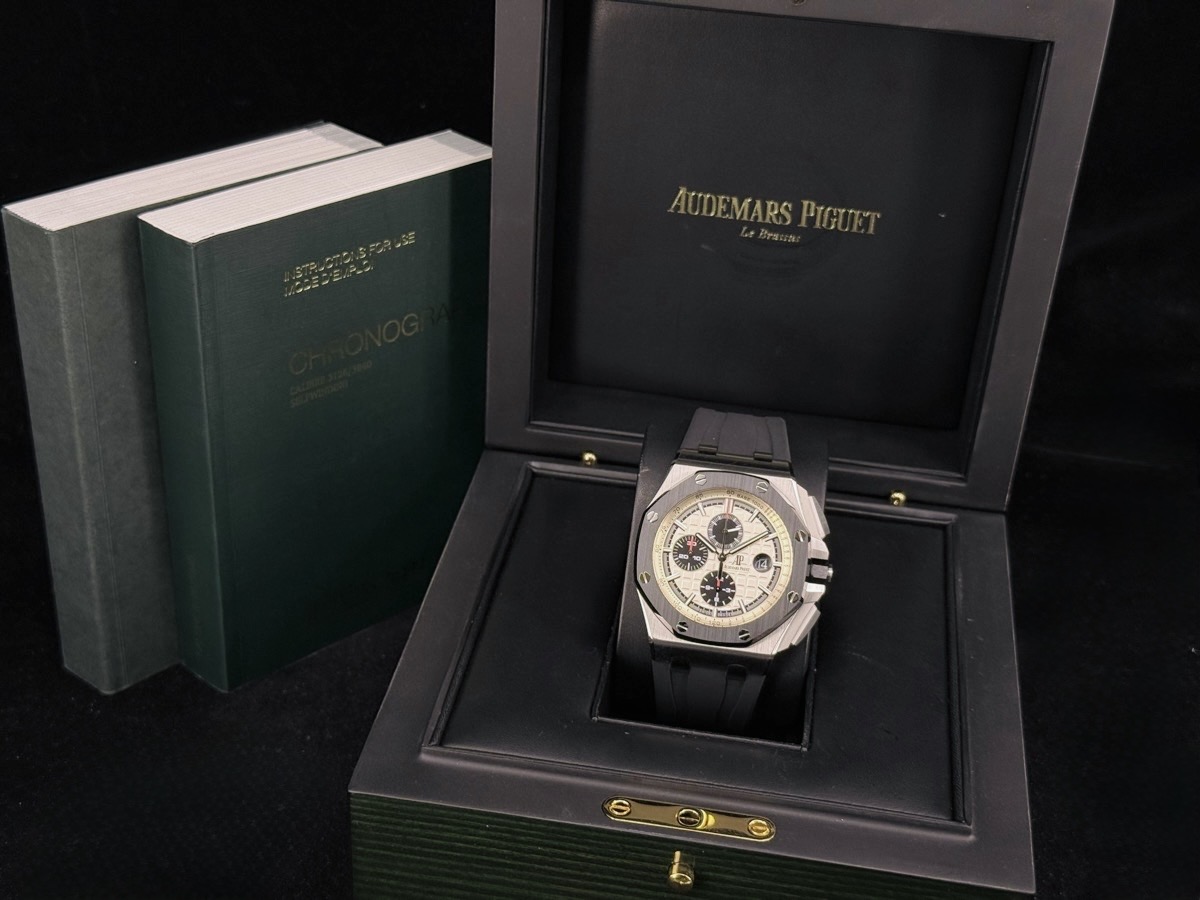 功能: 愛彼錶原廠Cal.3126/3840自動上鏈機芯 / 時、分、小秒針、放大日期窗 / 60秒、30分鐘、12小時計時碼表 / 動力儲存50小時 / 防水100米