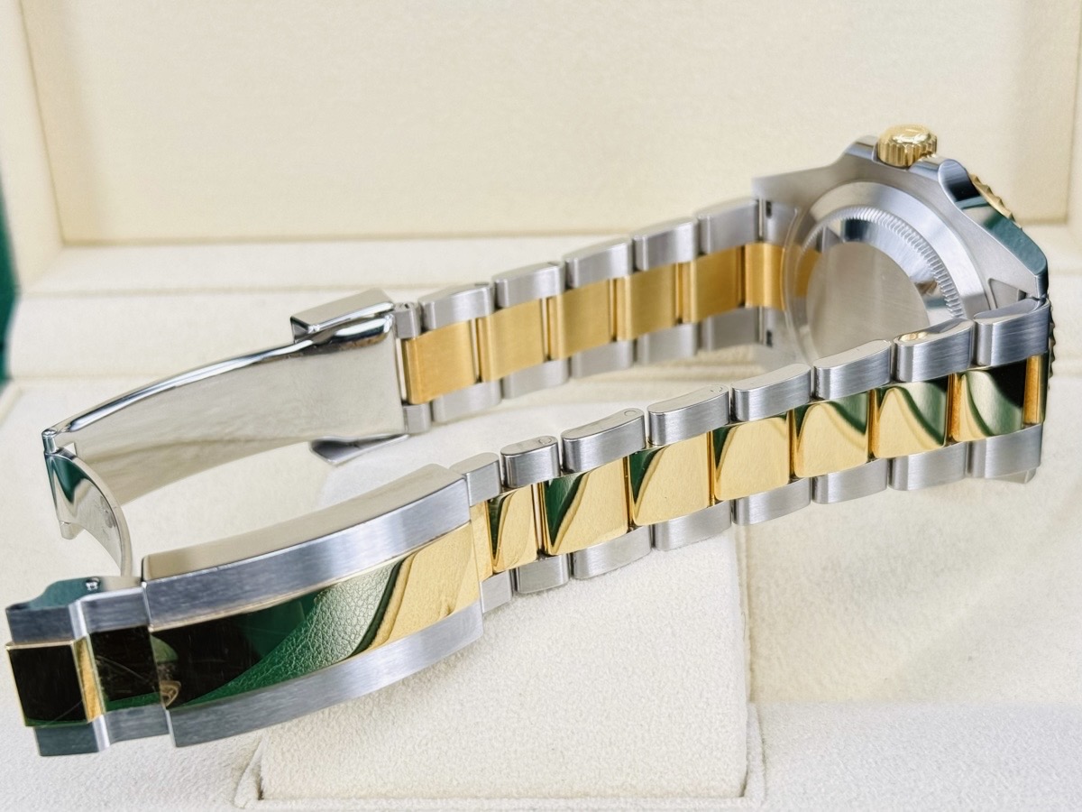 904L精鋼+18K黃金材質錶殼、錶帶、快調式摺疊扣 / 藍色放射紋面盤 / 夜光賓士指針、時標 / Cerachrom藍色陶瓷單向旋轉錶圈 / 旋入式錶冠 / 抗磨損藍寶石水晶玻璃 / 防偽內圈