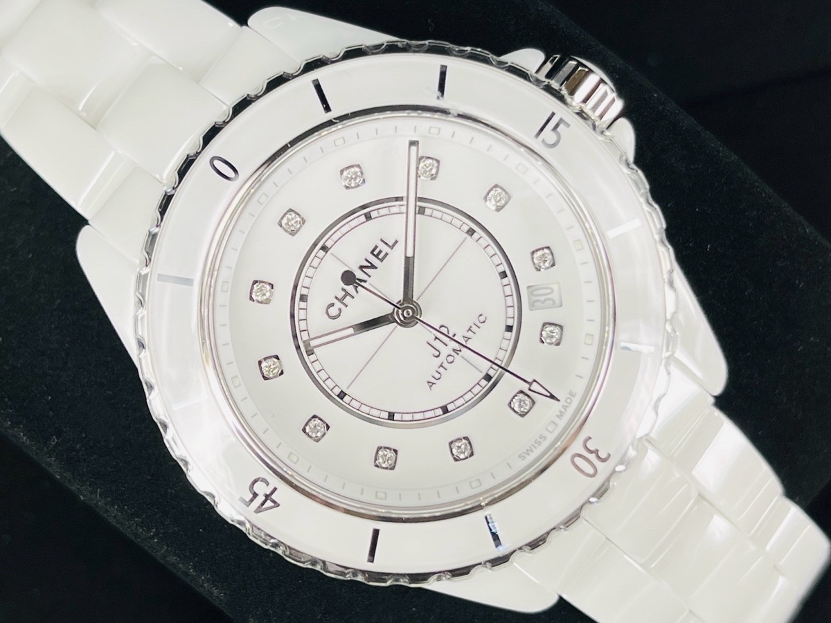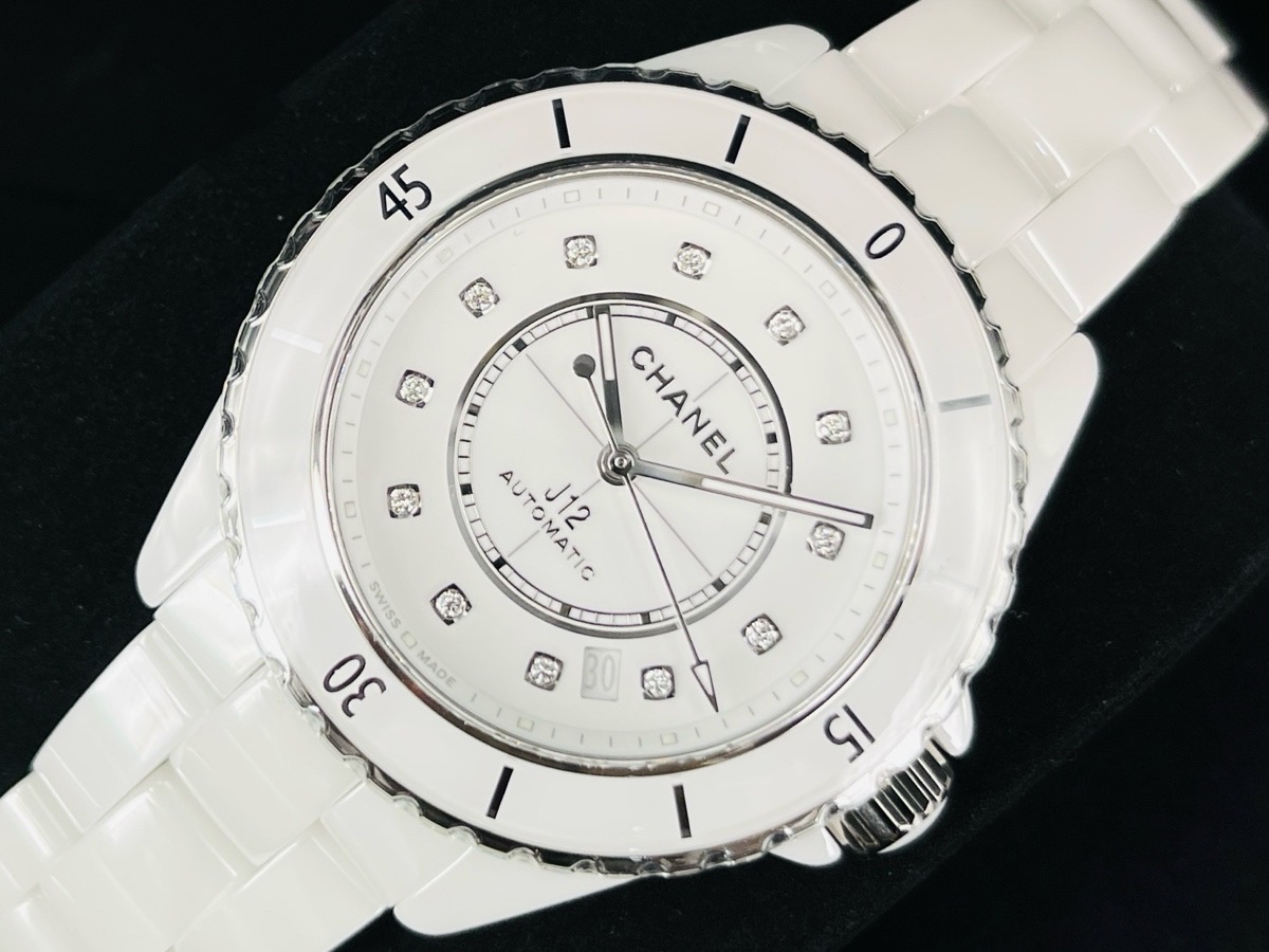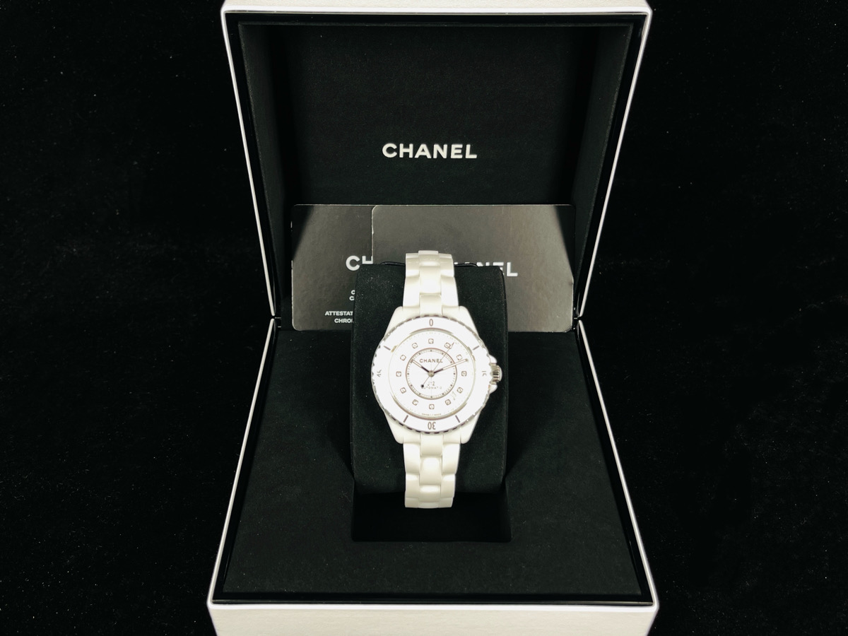 CHANEL 香奈兒 J12 H5705 最新款 白色12鑽石面盤白色高科技精密陶瓷 專利不鏽鋼蝴蝶扣