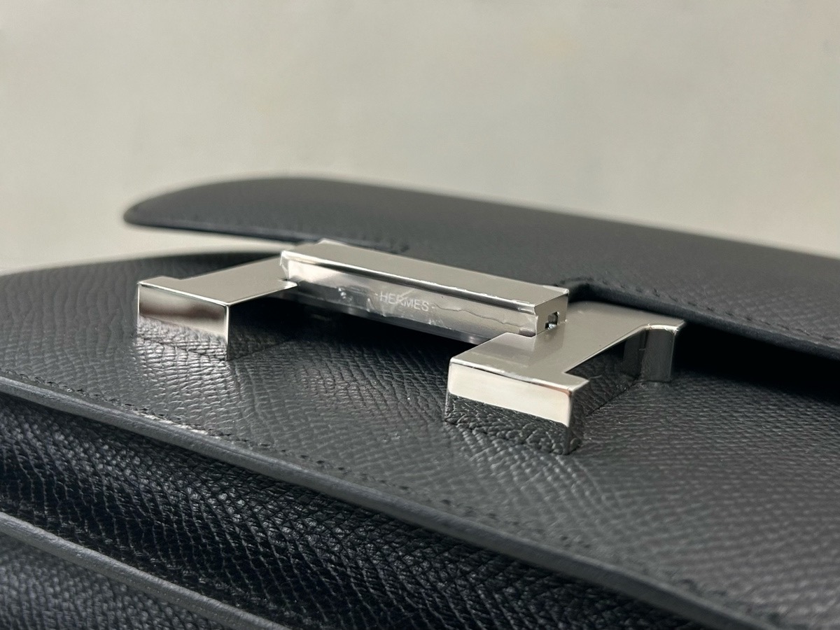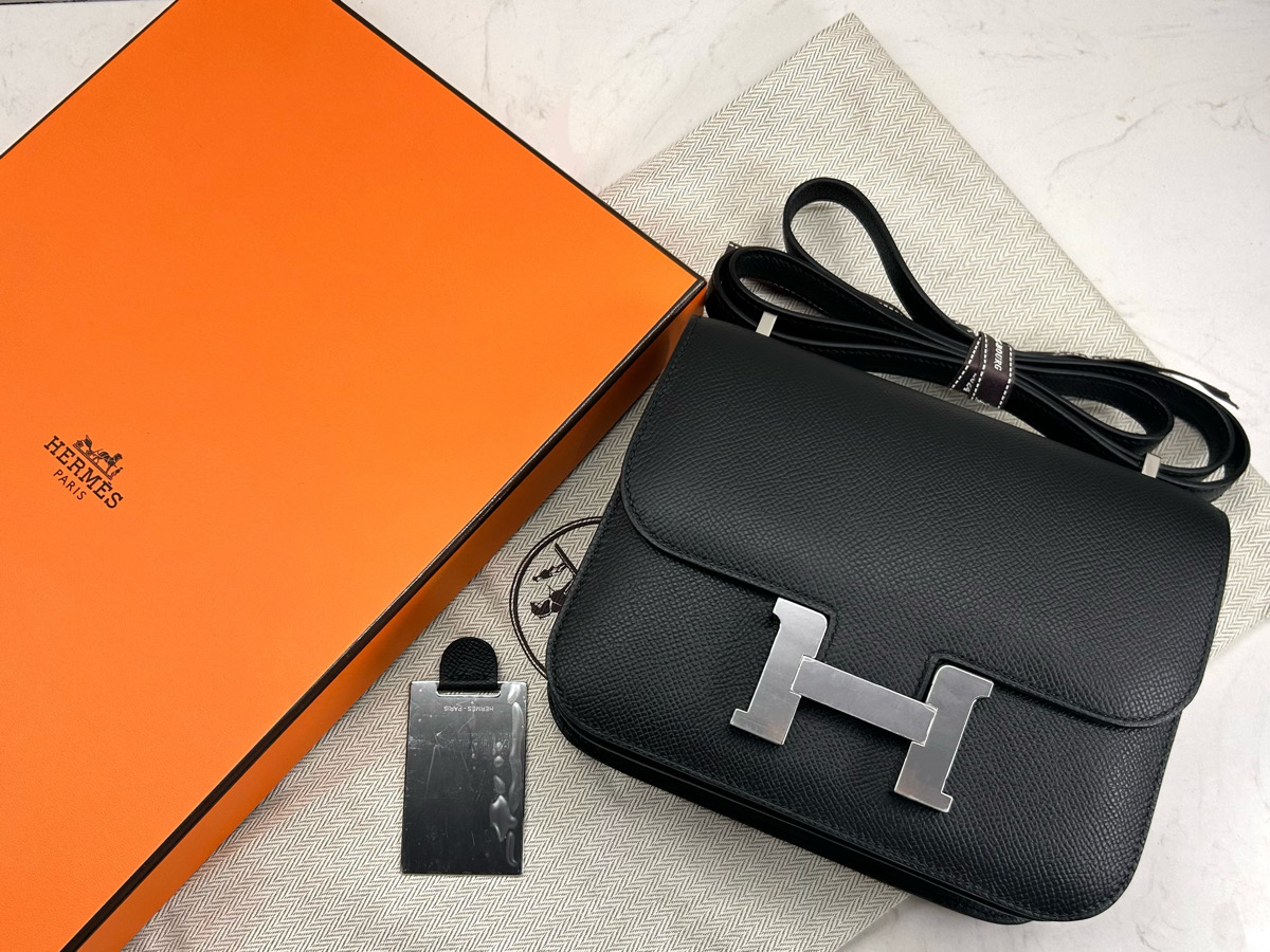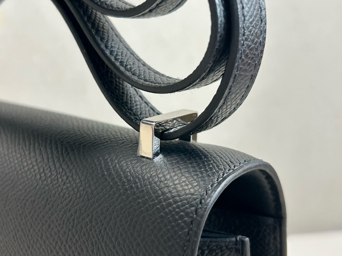 HERMES 愛馬仕 Mini Constance 康康包 牛皮翻蓋斜背包 黑色 Epsom皮 三大金剛色之一