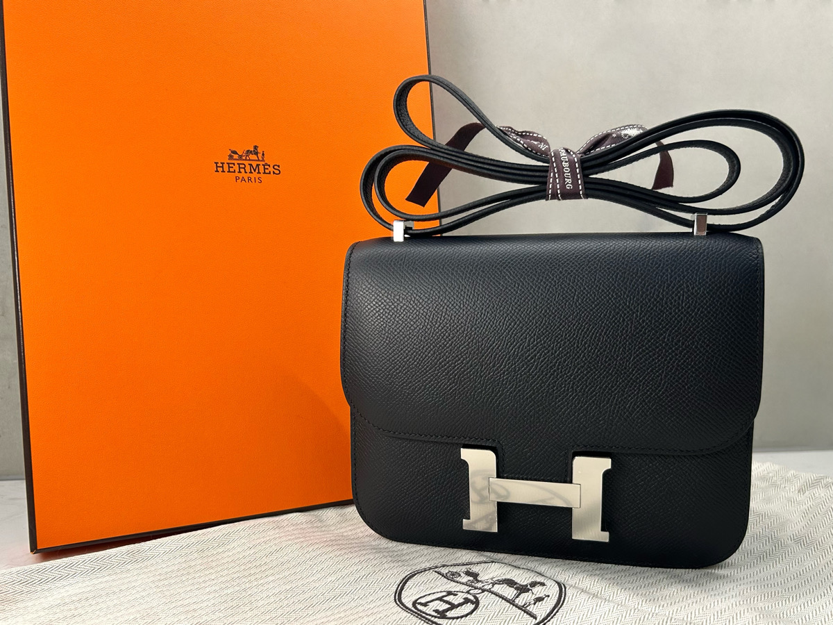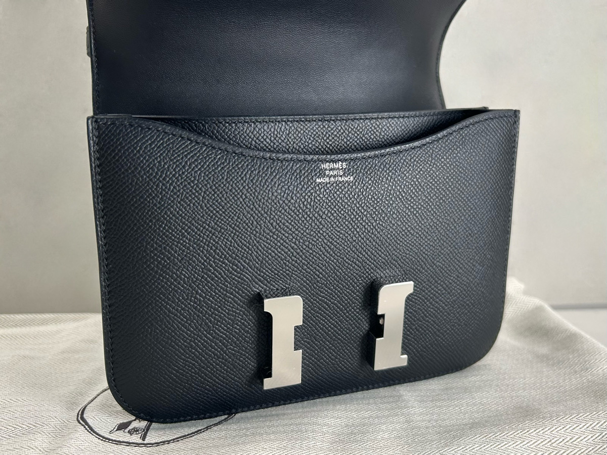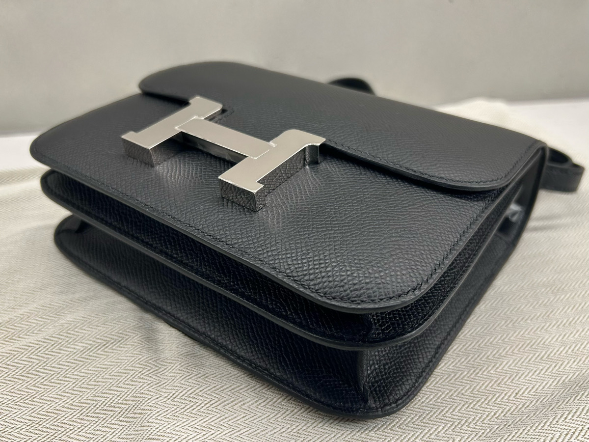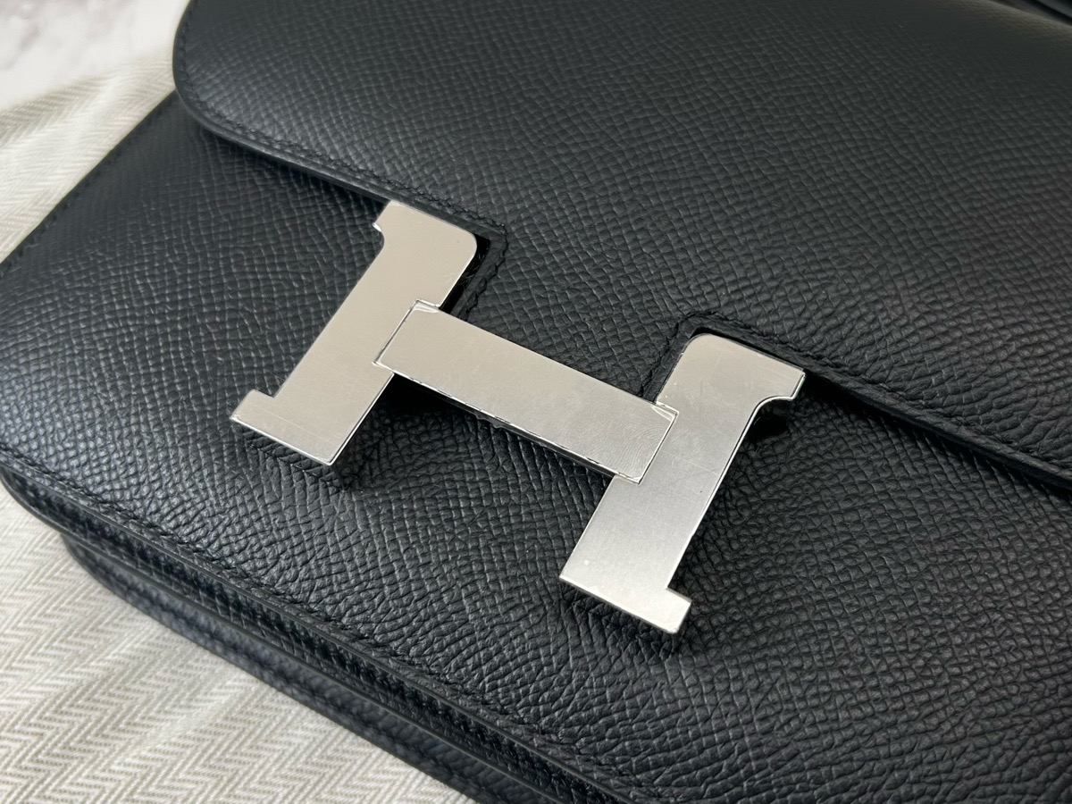 HERMES 愛馬仕 Mini Constance 康康包 牛皮翻蓋斜背包 黑色 Epsom皮 三大金剛色之一