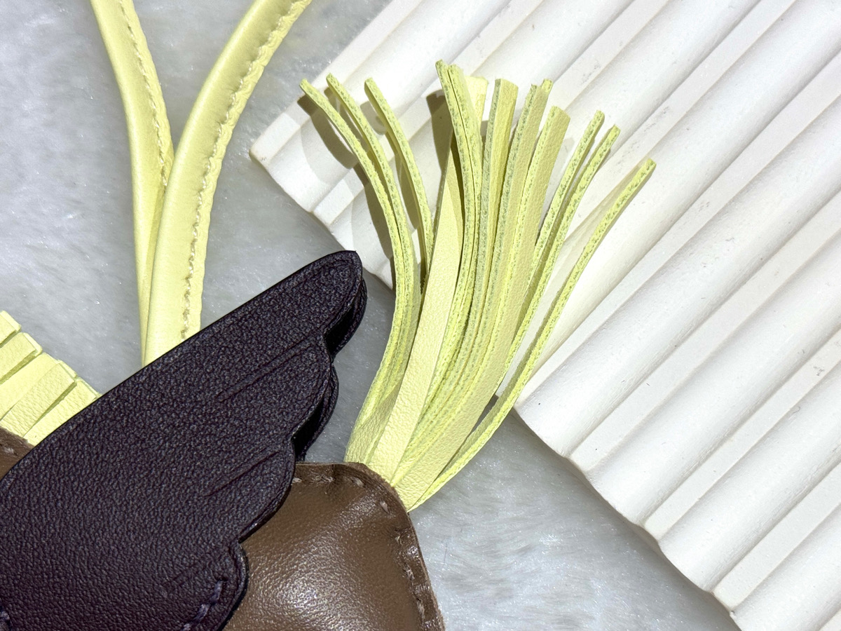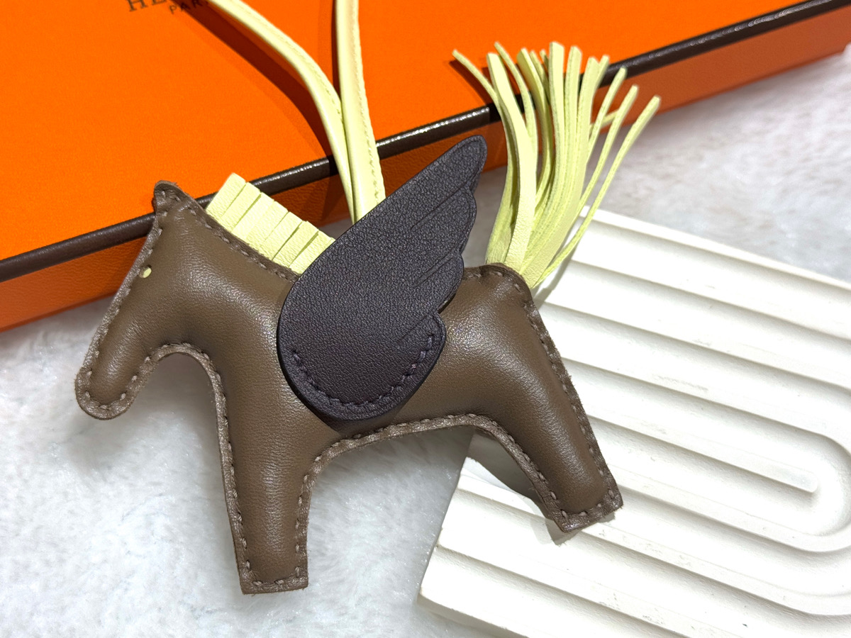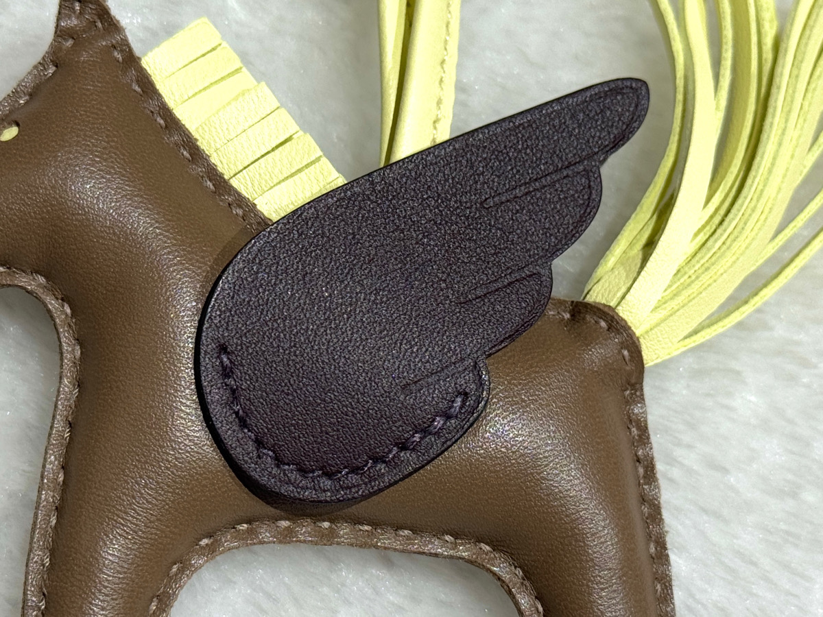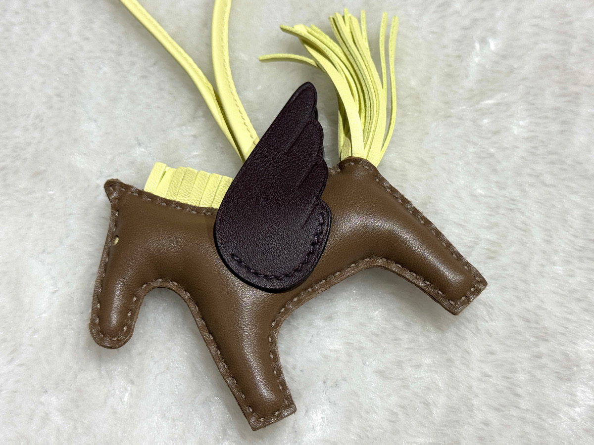 HERMES 愛馬仕 小羊皮飛馬吊飾 大象灰 馬鞍紅 米爾頓黃 B刻