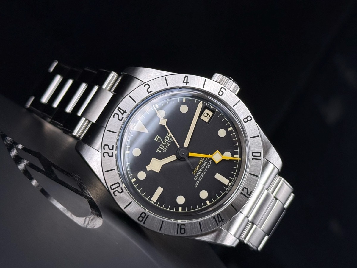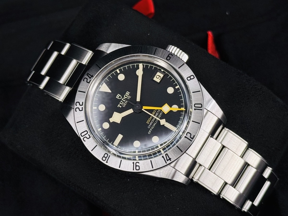 GMT兩地時區 黃色雪花時針 帝舵探險家 配帝舵表「T-fit」快速調節帶扣