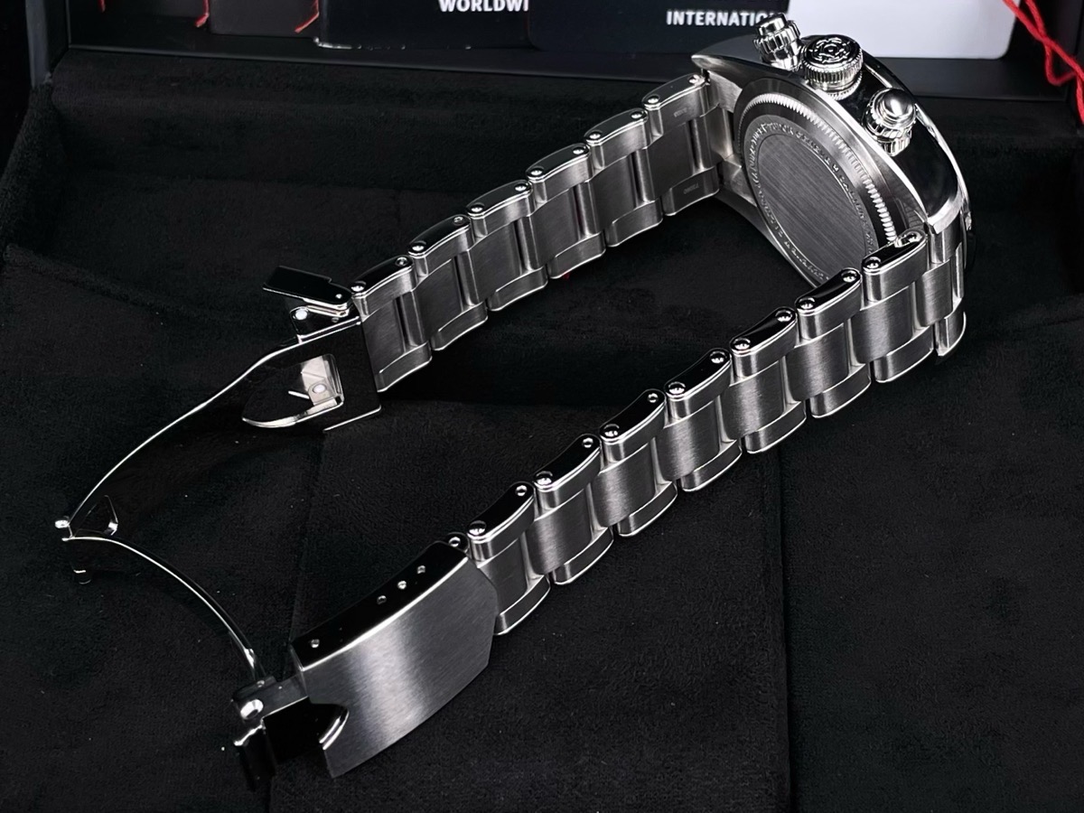 316L不鏽鋼錶殼、錶帶、摺疊扣、旋入式錶冠 / 夜光雪花指針及時標 / 藍寶石水晶玻璃