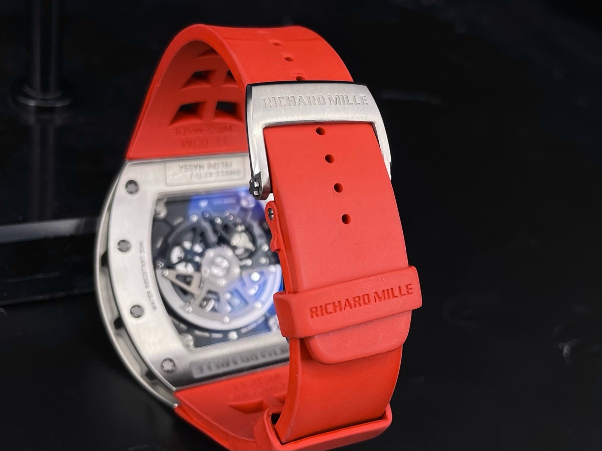 鈦金屬款 RM011 體現了品牌所代表的一切 錶殼具有典型的理查德米勒風格 酒桶形 帶有弧形錶圈、側面和底蓋