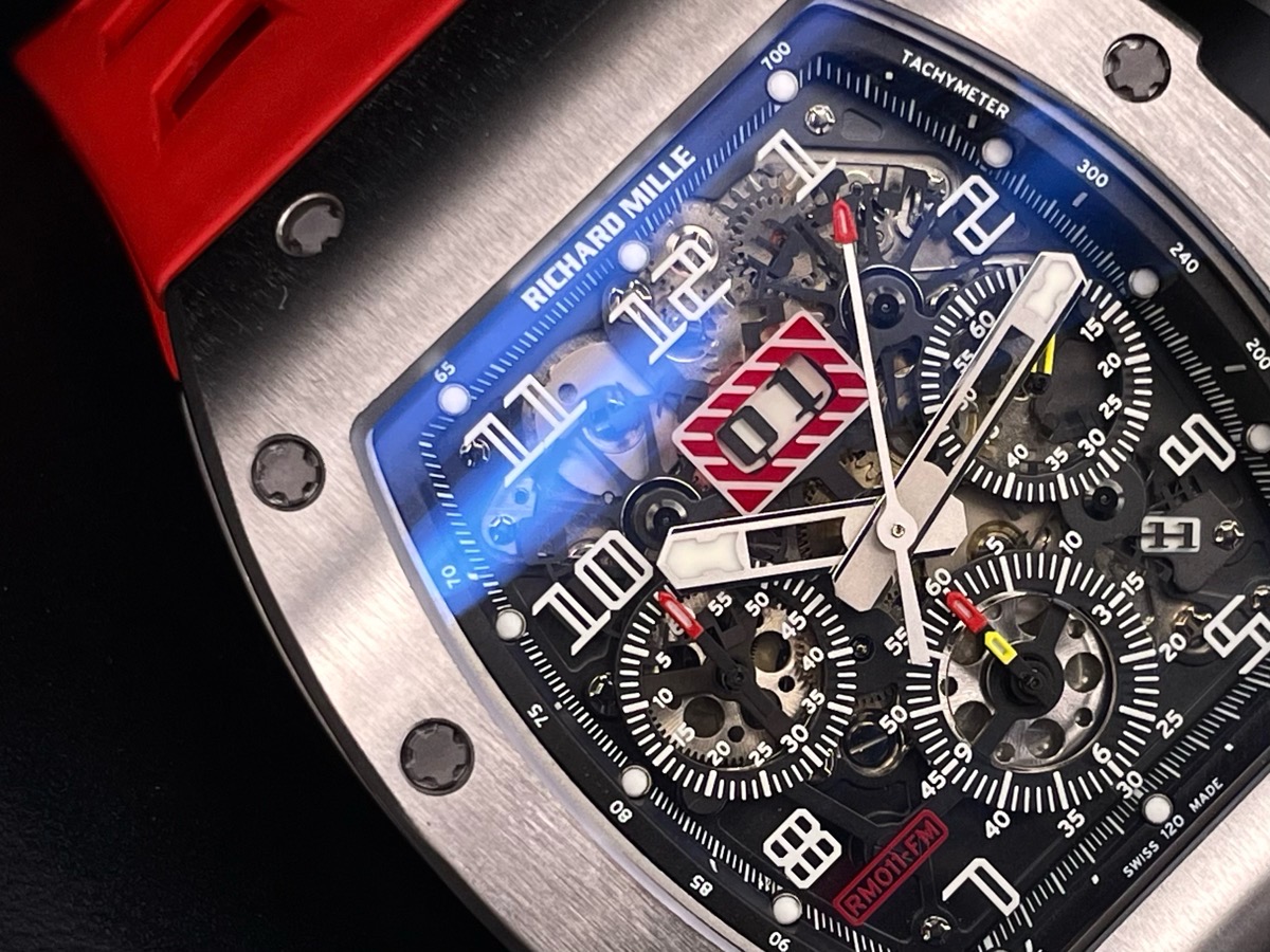 RICHARD MILLE 理查德‧米勒 RMAC1 鏤空自動上鍊機芯 / 時、分、小秒針時間顯示、大日期窗 及月份顯示 / 飛返計時碼表功能 / 動力儲存55小時 / 防水50米