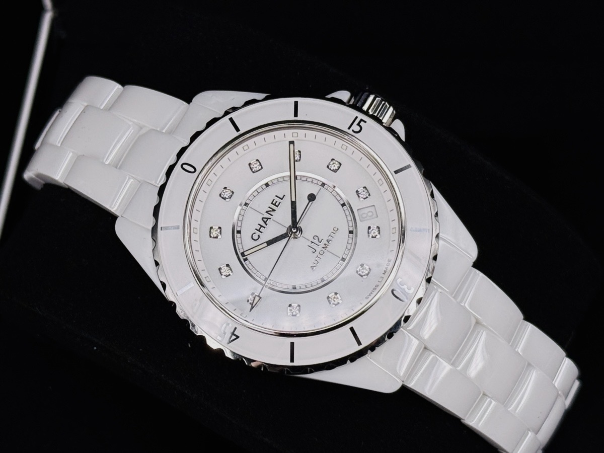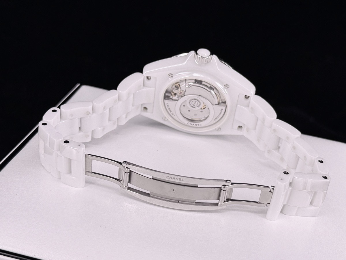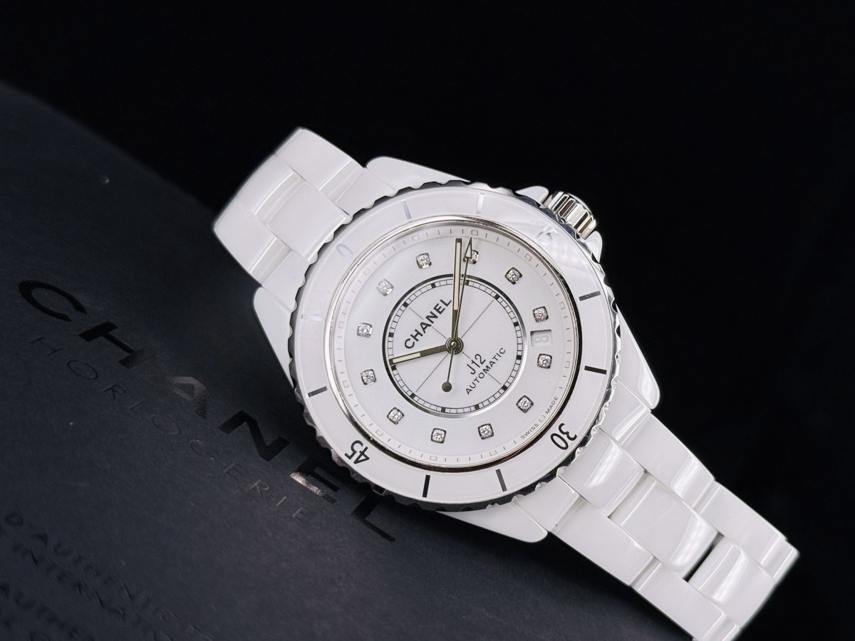 CHANEL 香奈兒 J12 H5705 最新款 白色12鑽石面盤白色高科技精密陶瓷 專利不鏽鋼蝴蝶扣