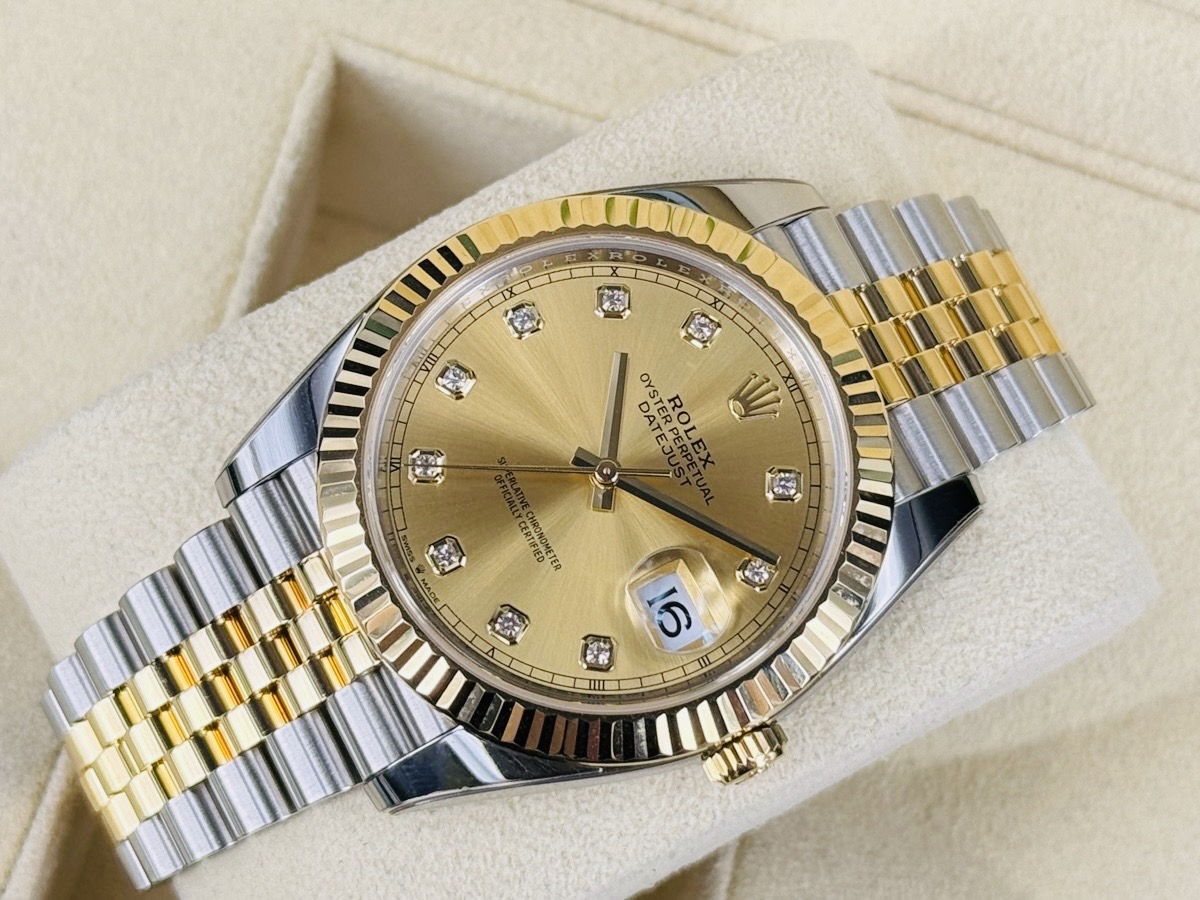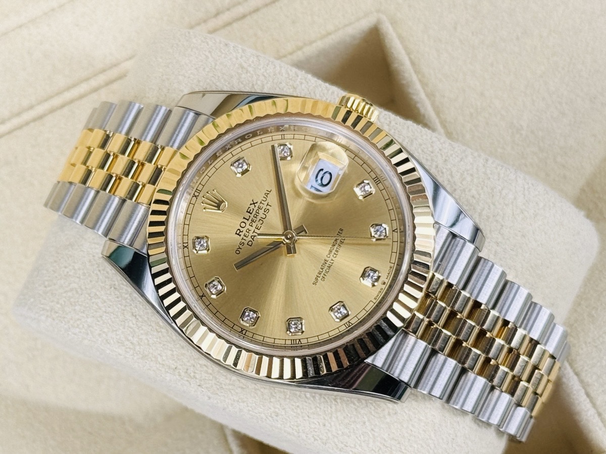 香檳色鑲鑽時標面盤 + 18CT黃金閃耀太陽圈 = cp值最高的經典錶款
