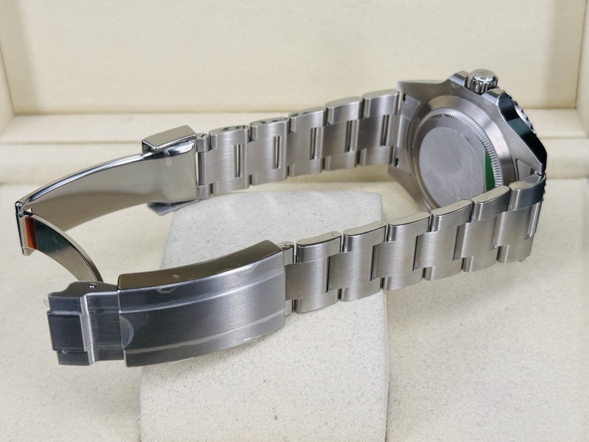 904L精鋼材質錶殼、錶帶、快調式摺疊扣 / 黑色面盤 / 夜光賓士指針、時標 / Cerachrom綠色陶瓷單向旋轉錶圈 / 旋入式錶冠 / 抗磨損藍寶石水晶玻璃 / 防偽內圈