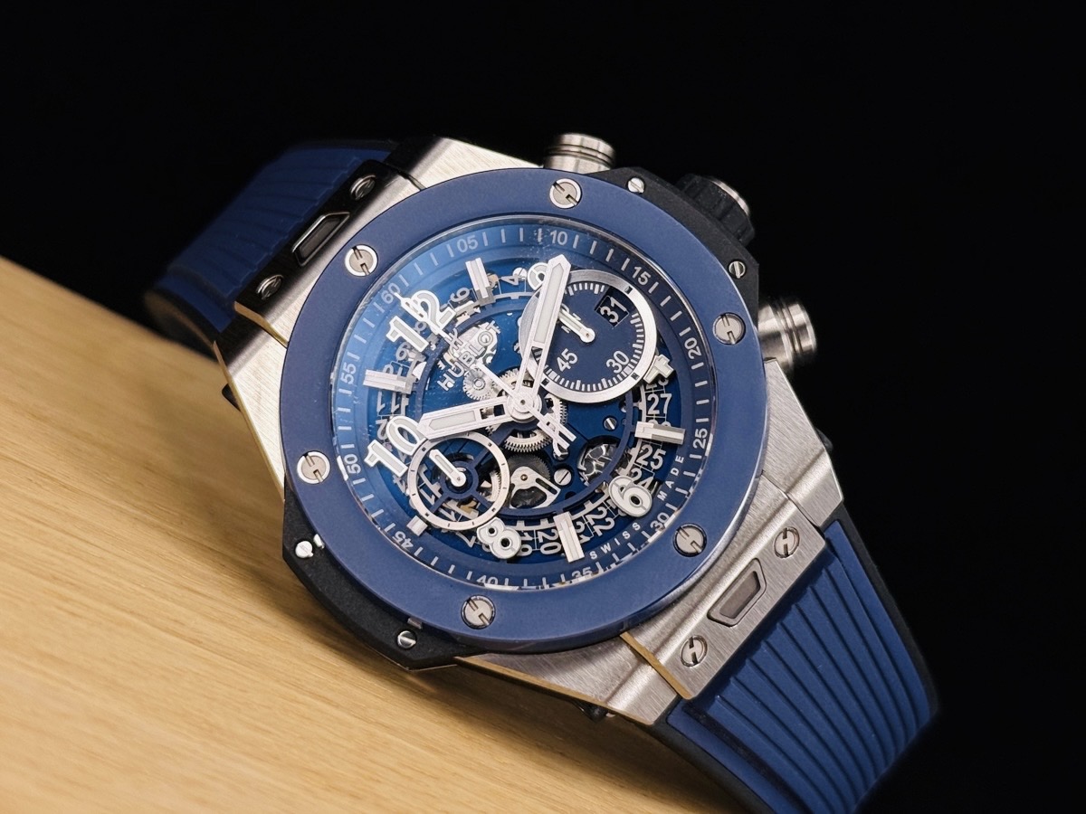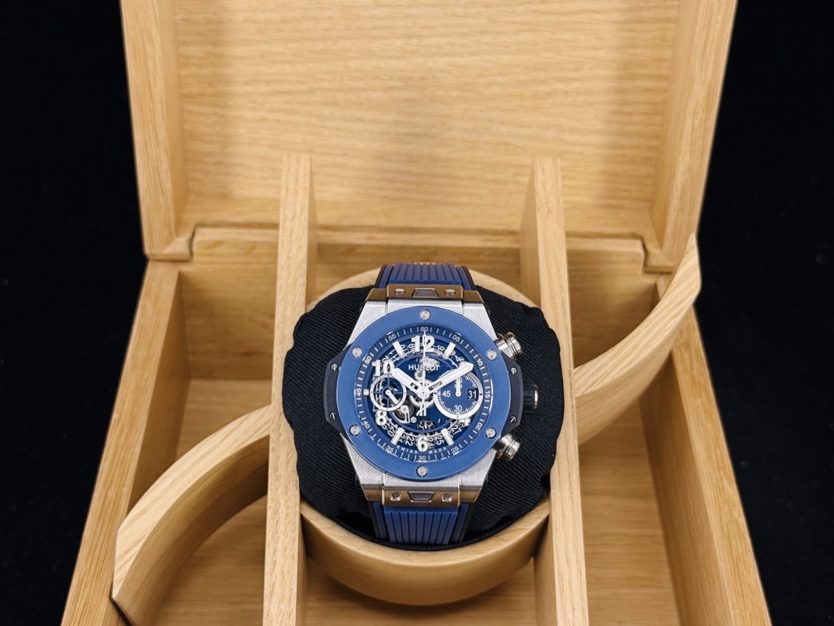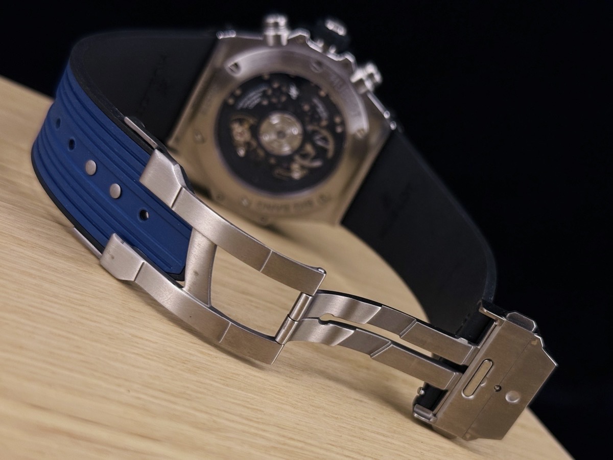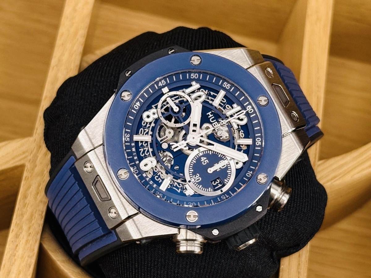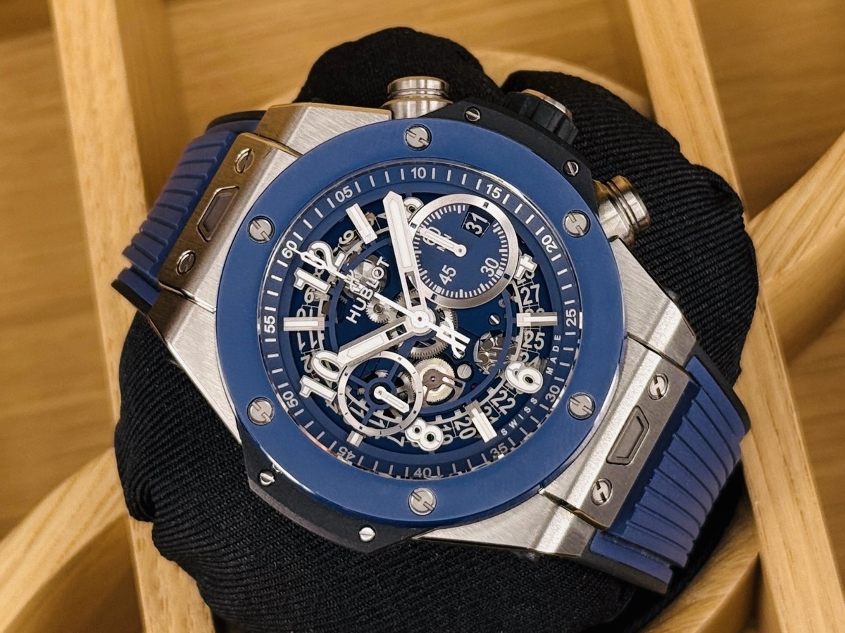 Hublot 宇舶 Big Bang 大爆炸 Unico Titanium 421.NL.5170.RX 微珠噴砂及拋光鈦金屬錶殼 藍色陶瓷圈 雙逆跳裝置 及 導柱輪飛返計時碼錶