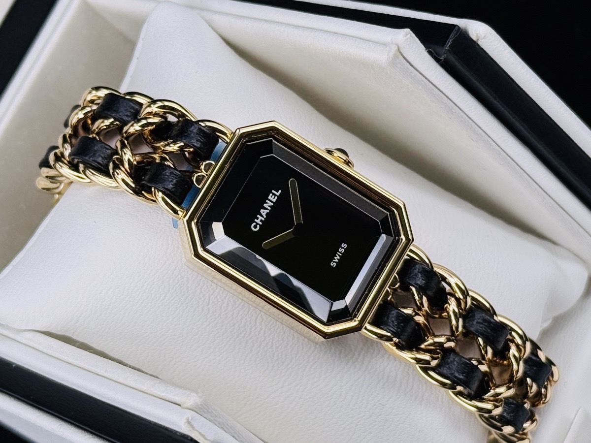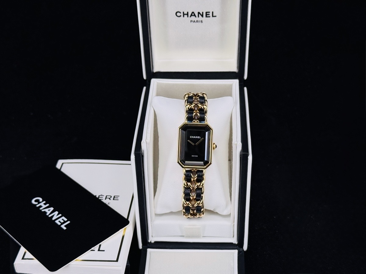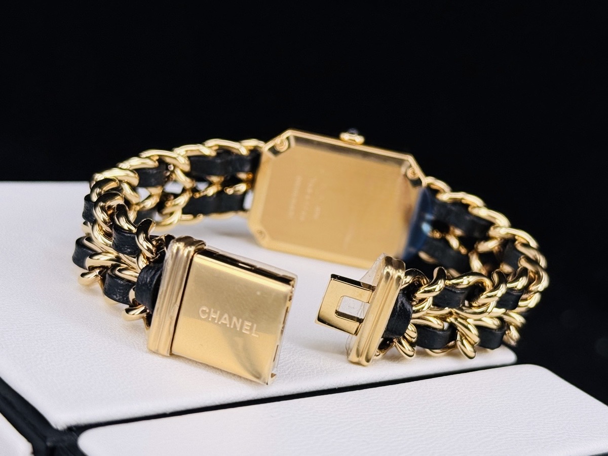 CHANEL 香奈兒 PREMIÈRE腕錶 - 原創款 H6951 18K黃金塗層精鋼材質 超美小香 黑色小牛皮交織18K黃金塗層精鋼錶鍊 2025年保卡 M尺寸錶鍊