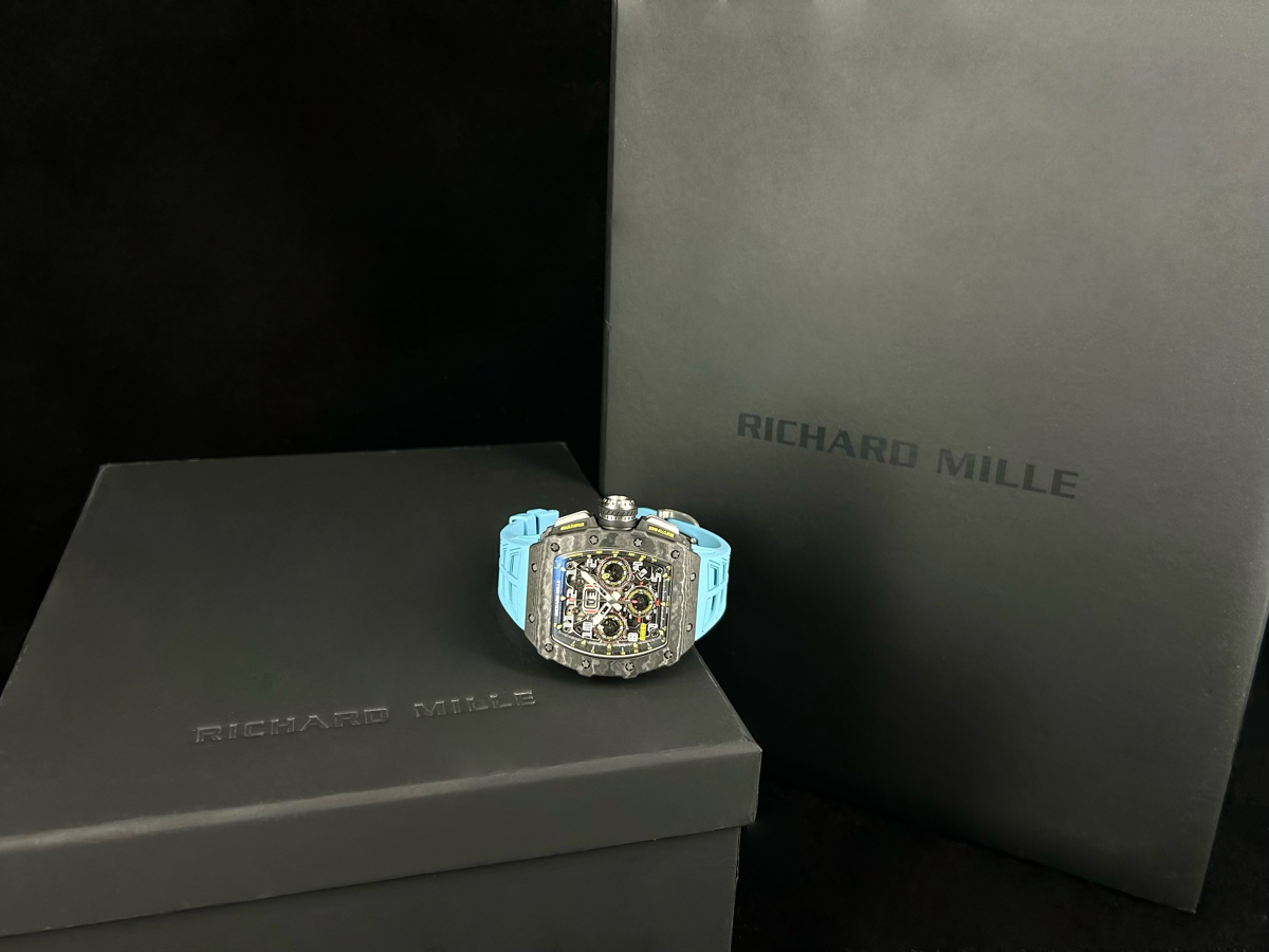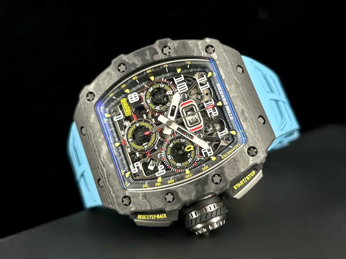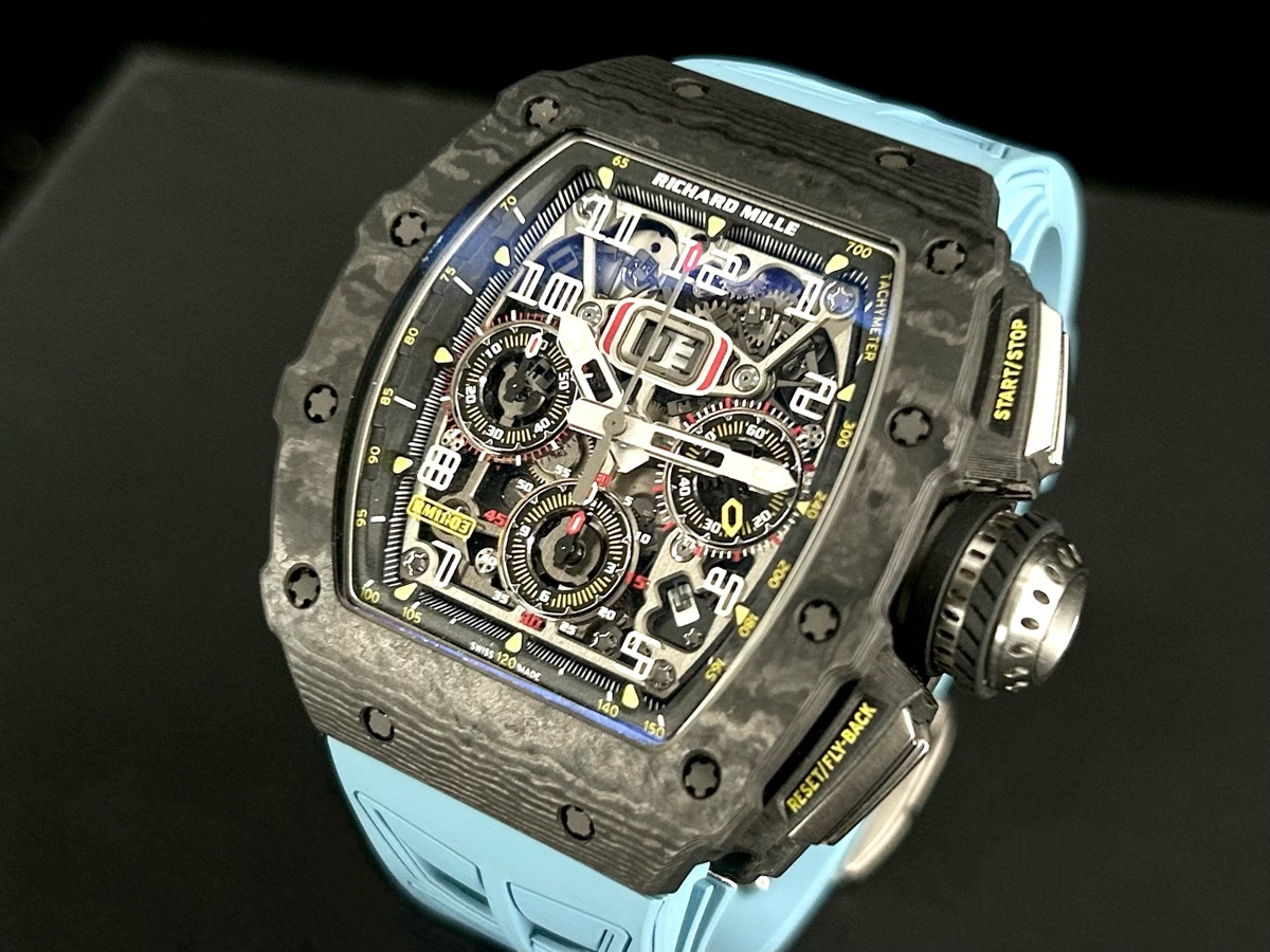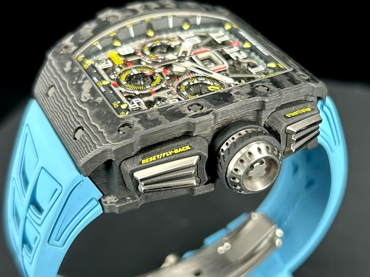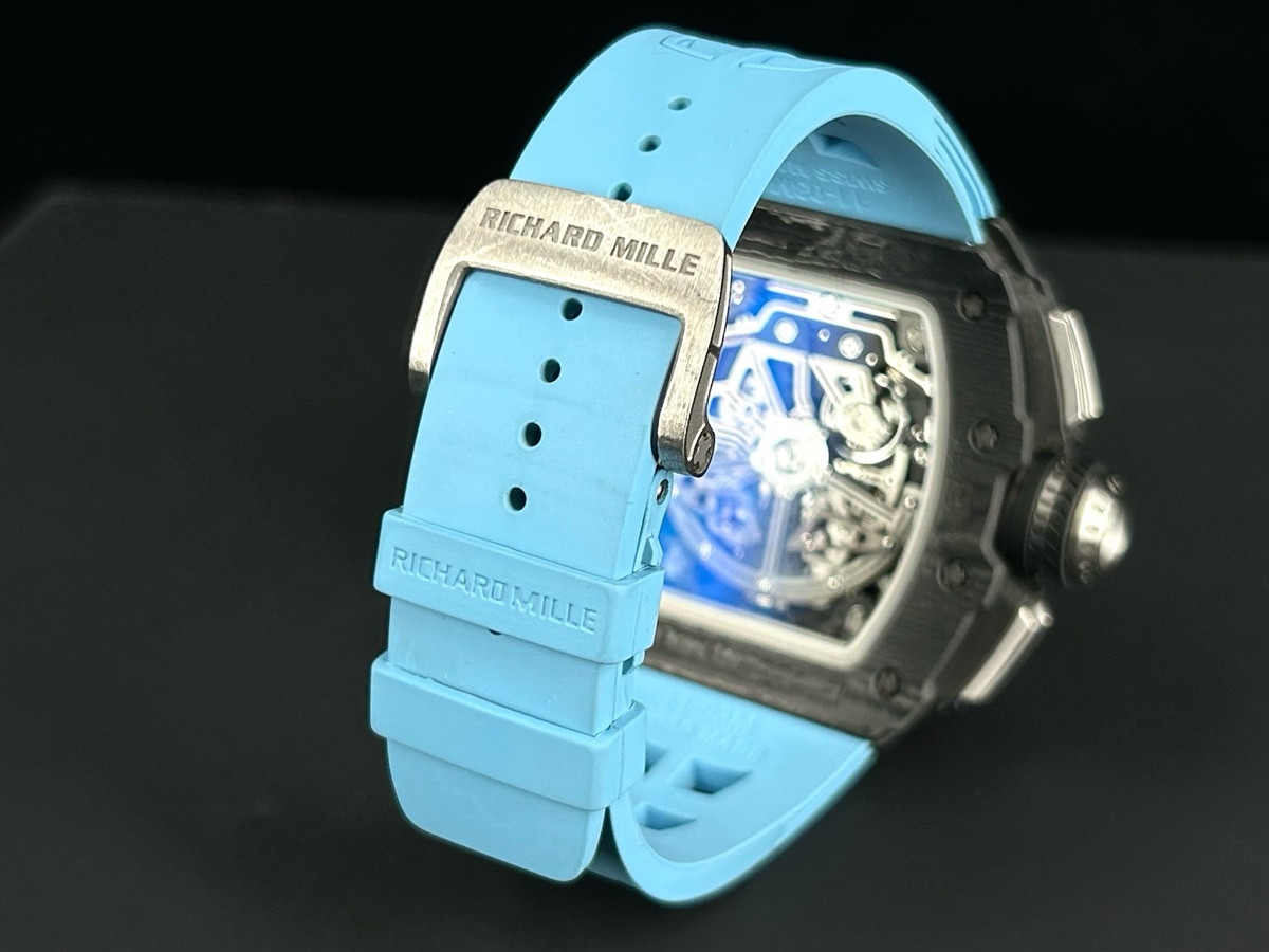 RICHARD MILLE 理查德•米勒RMAC3自動上鏈機械機芯 / 時、分、小秒針時間顯示 / 日期顯示 / 月份顯示 / 飛返計時碼表功能 / 可變幾何轉子 / 動能儲存55小時 / 防水:50m