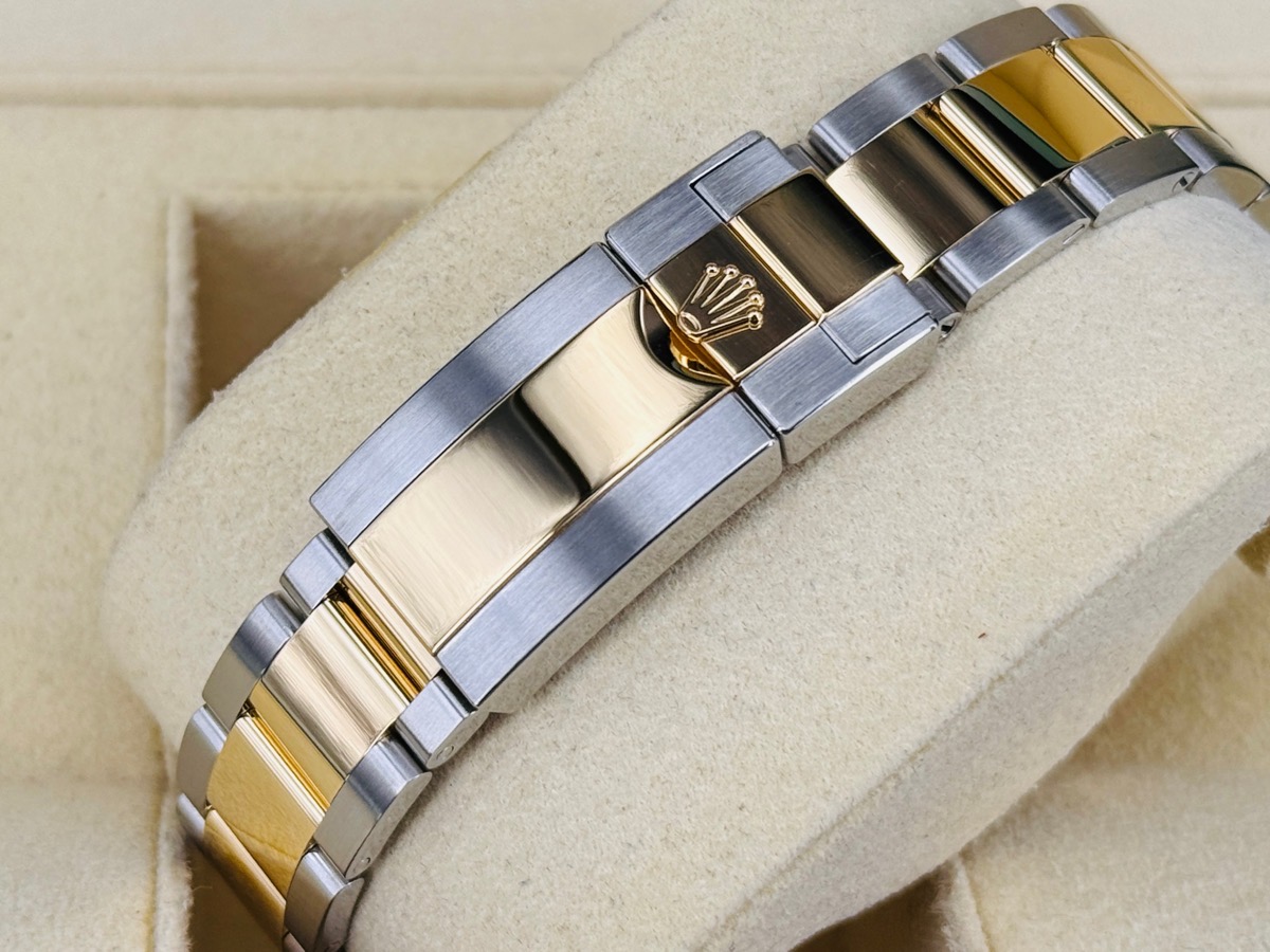 18K黃金+904L精鋼材質錶殼、錶帶、摺疊扣、旋入式錶冠 / 夜光指針及立體時標 / 18K黃金視距儀刻度錶圈 / 藍寶石水晶玻璃 / 防偽內圈