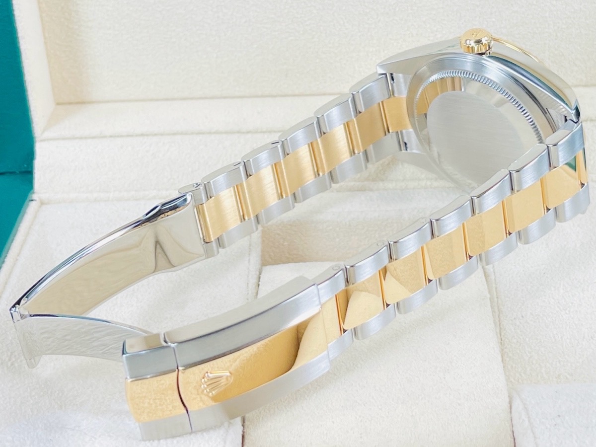 904L不鏽鋼+黃K金材質錶殼、錶鍊帶、摺疊帶扣、旋入式錶冠 / 黑色面盤 / 夜光指針及柱狀時標 / Ring Command雙向旋轉黃K金材質外圈 / 藍寶石水晶玻璃鏡面 / 防偽內圈