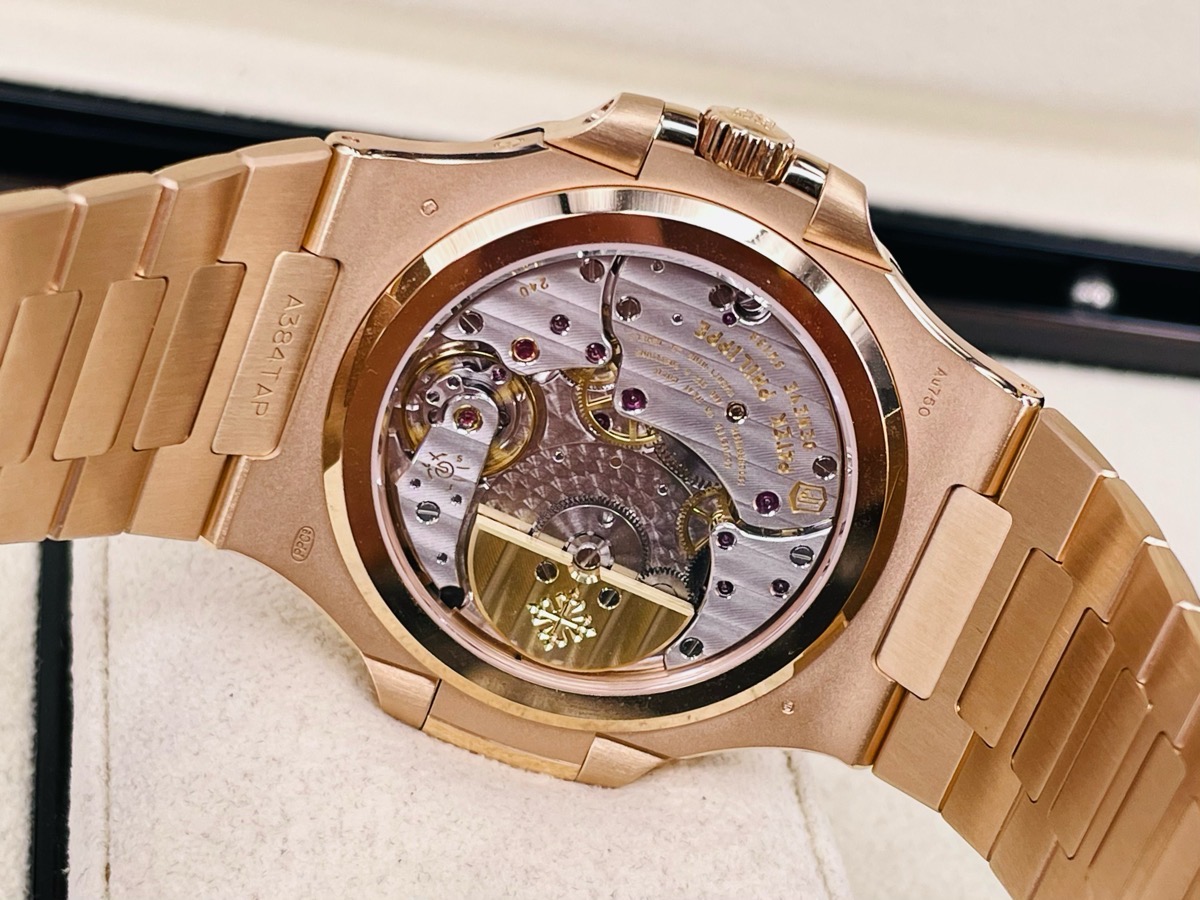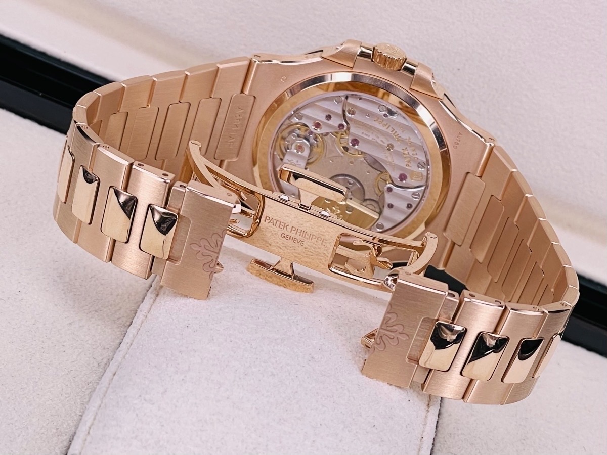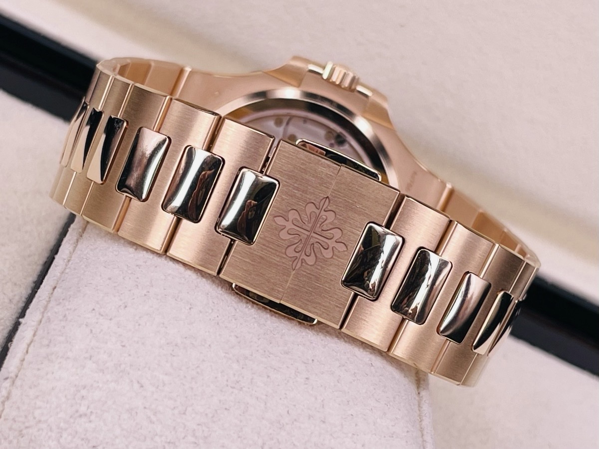 Patek philippe 百達翡麗 PP錶 Nautilus 5712/1R-001 棕色日輝紋錶盤 邊緣呈黑色漸變效果 水平橫紋浮雕圖案 覆熒光塗層的金質立體時標