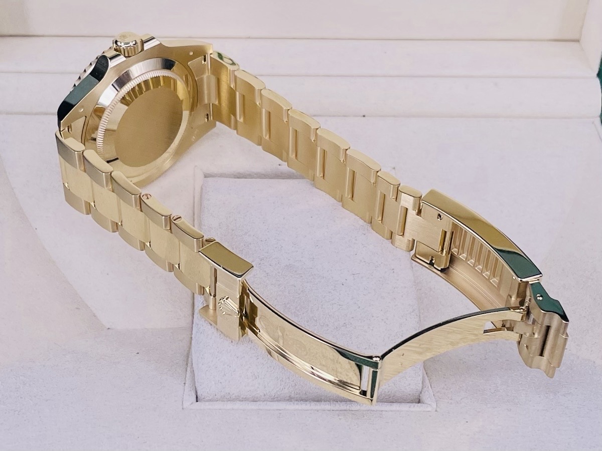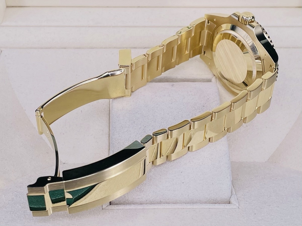 18K黃金材質錶殼、錶帶、快調式摺疊扣 / 藍色放射紋面盤 / 夜光賓士指針、時標 / Cerachrom藍色陶瓷單向旋轉錶圈 / 旋入式錶冠 / 抗磨損藍寶石水晶玻璃 / 防偽內圈