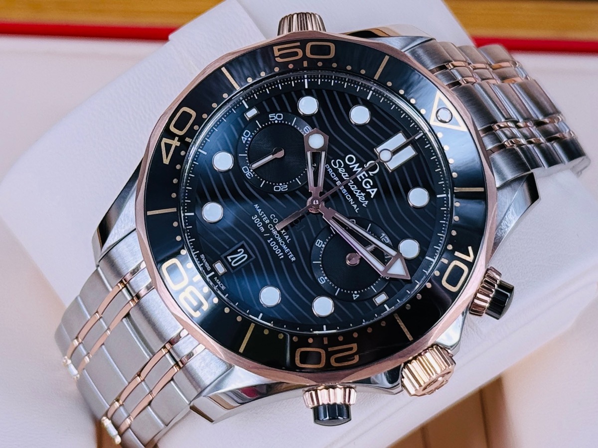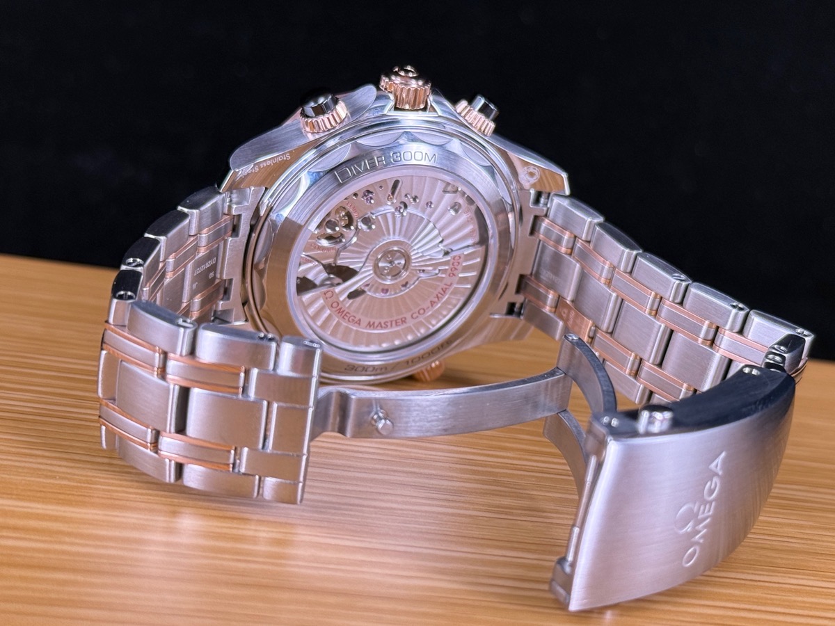 黑色陶瓷錶圈、旋入式錶冠 / 排氦閥門 / 不鏽鋼‑Sedna™金錶鏈帶 / 18K金鏤空指針 / 白色Super-LumiNova超螢光塗層時標 / 藍寶石水晶玻璃鏡面及透明錶背