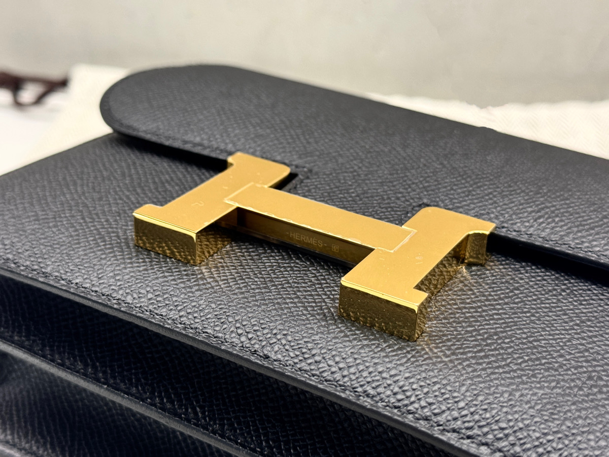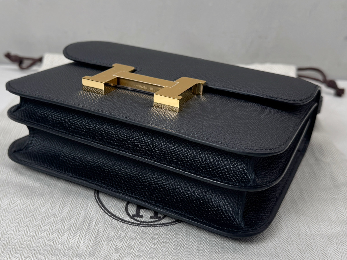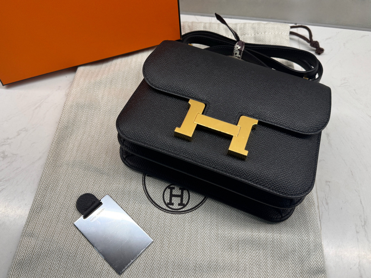 HERMES 愛馬仕 Mini Constance 康康包 牛皮翻蓋斜背包 黑色 Epsom皮 三大金剛色之一