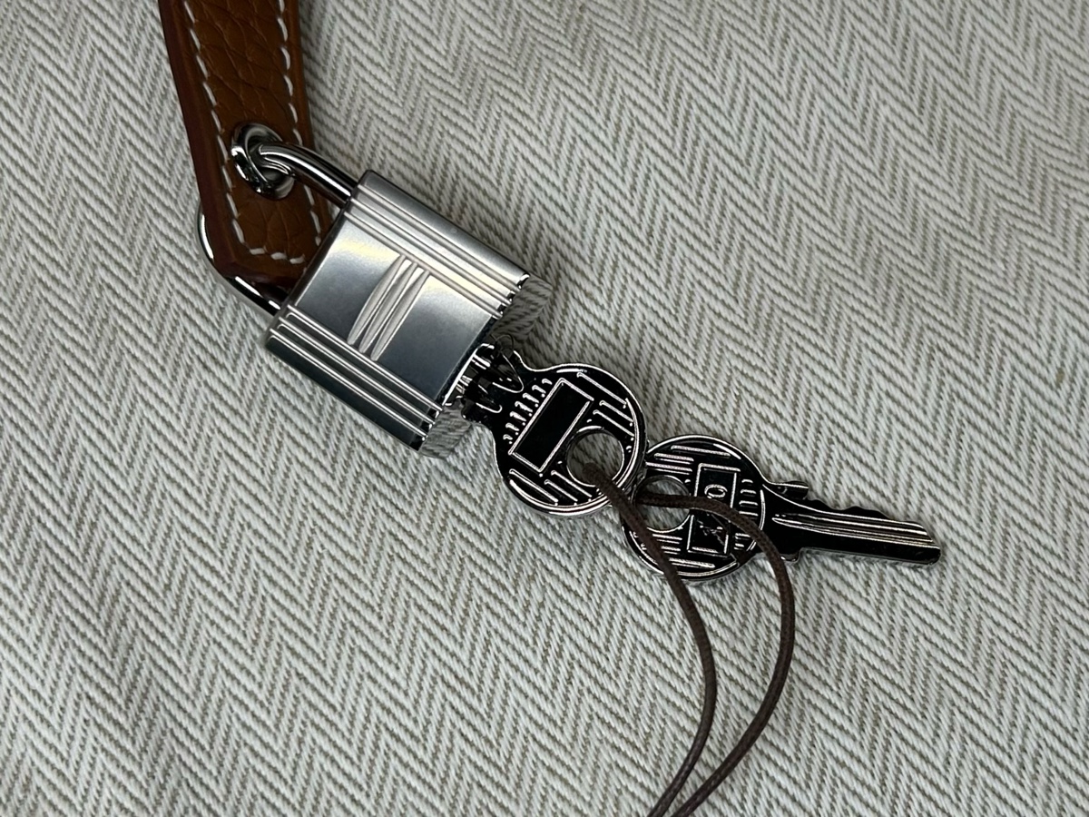 金棕色 隨性又好看 牛皮手提鎖頭包