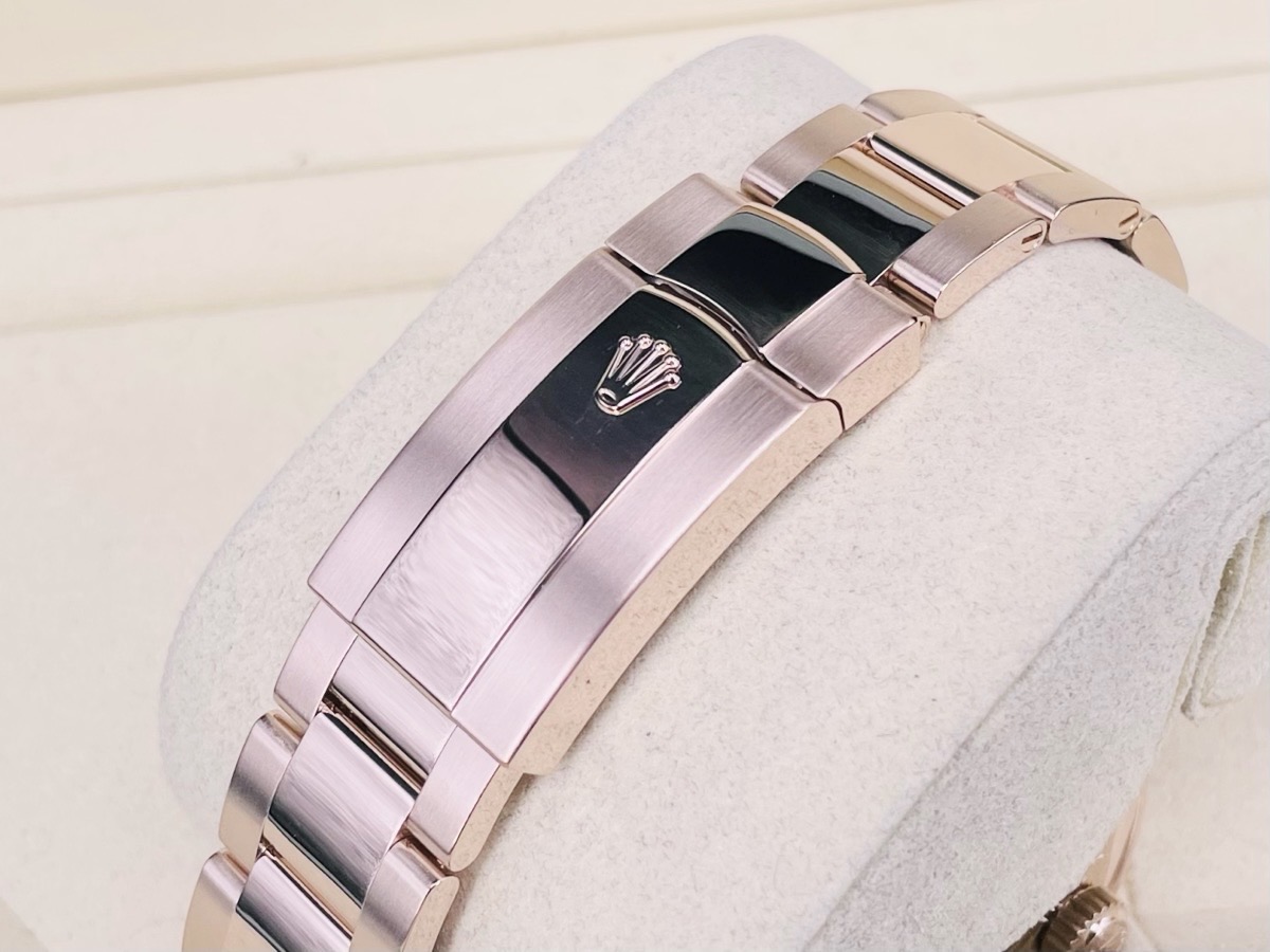 18K永恒玫瑰金材質錶殼、錶鍊帶、摺疊帶扣、旋入式錶冠 / 夜光指針及柱狀時標 / Ring Command雙向旋轉外圈 / 藍寶石水晶玻璃鏡面 / 防偽內圈