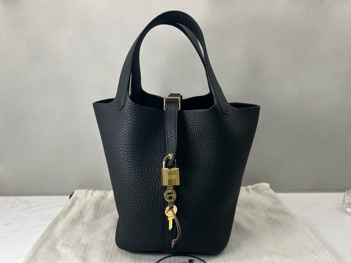 HERMES 愛馬仕 經典 Picotin Lock 菜籃子 P18黑色 隨性又好看 牛皮手提鎖頭包