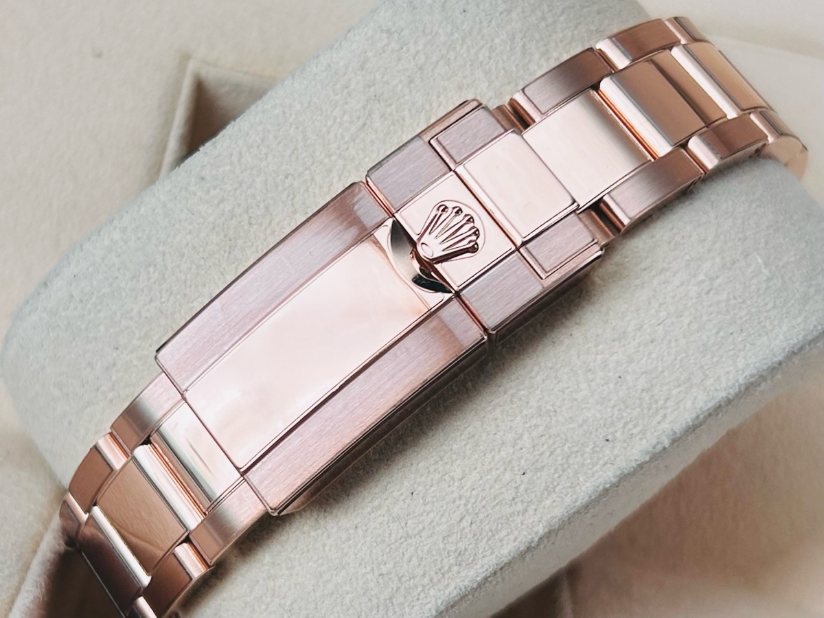 18K玫瑰金錶殼、錶帶、摺疊扣、旋入式錶冠、視距儀刻度錶框 / 夜光指針 / 藍寶石水晶玻璃 / 防偽內圈