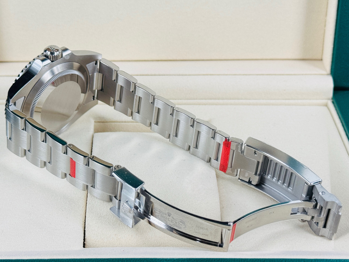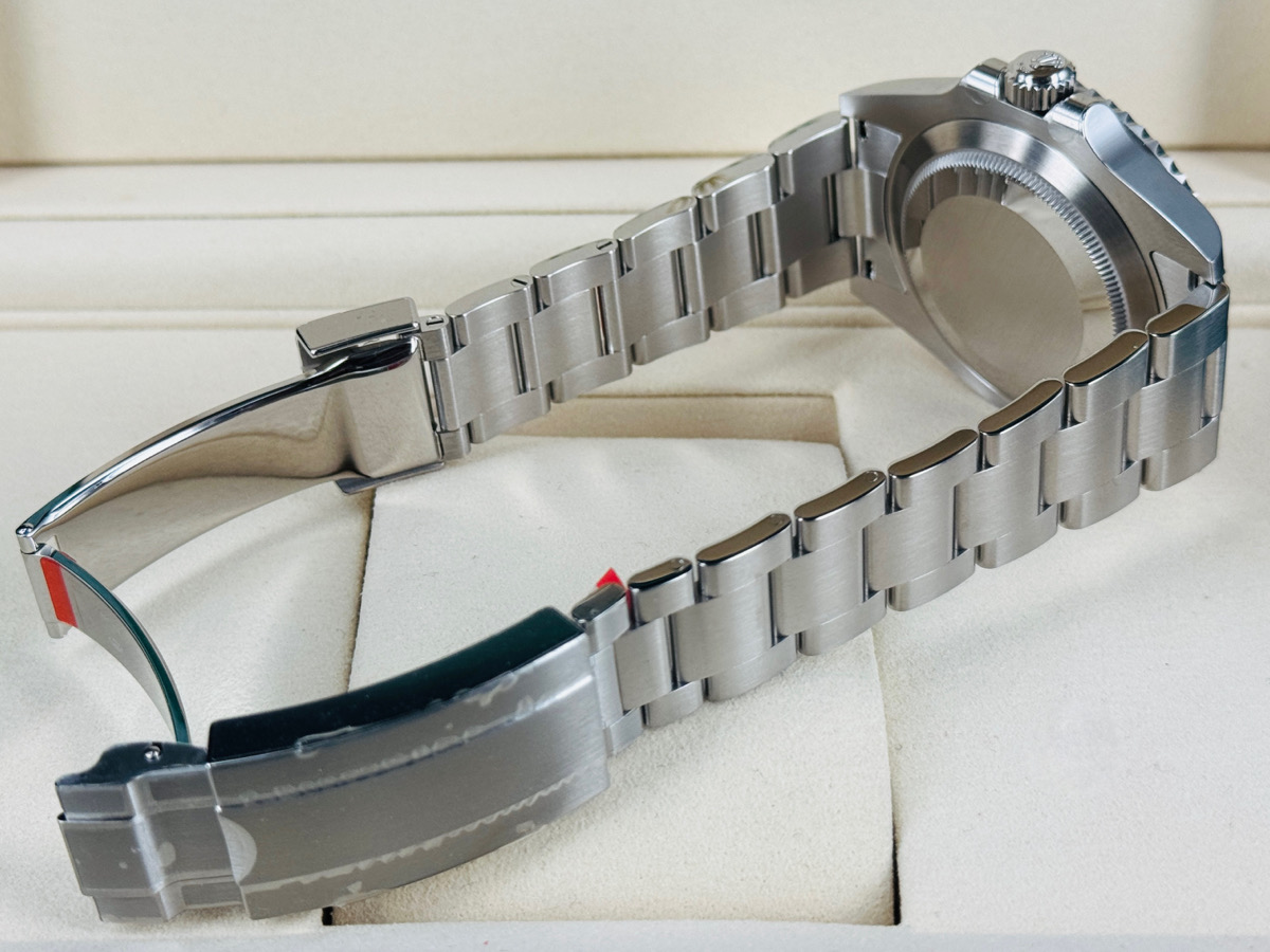 904L精鋼材質錶殼、錶帶、快調式摺疊扣 / 黑色面盤 / 夜光賓士指針、時標 / Cerachrom綠色陶瓷單向旋轉錶圈 / 旋入式錶冠 / 抗磨損藍寶石水晶玻璃 / 防偽內圈