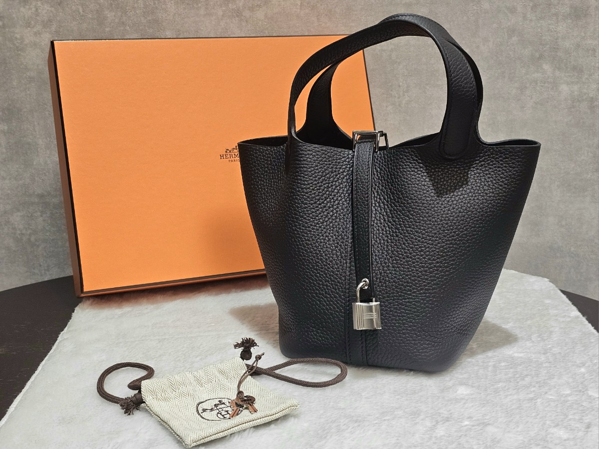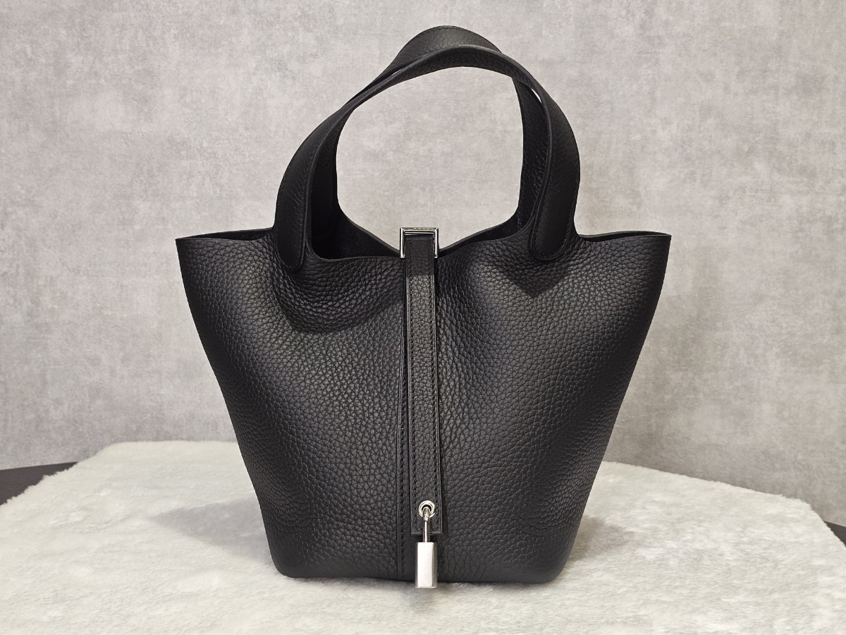 HERMES 愛馬仕 經典 Picotin Lock 菜籃子 P18 黑色 隨性又好看 牛皮手提鎖頭包