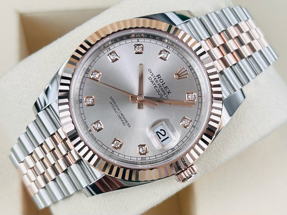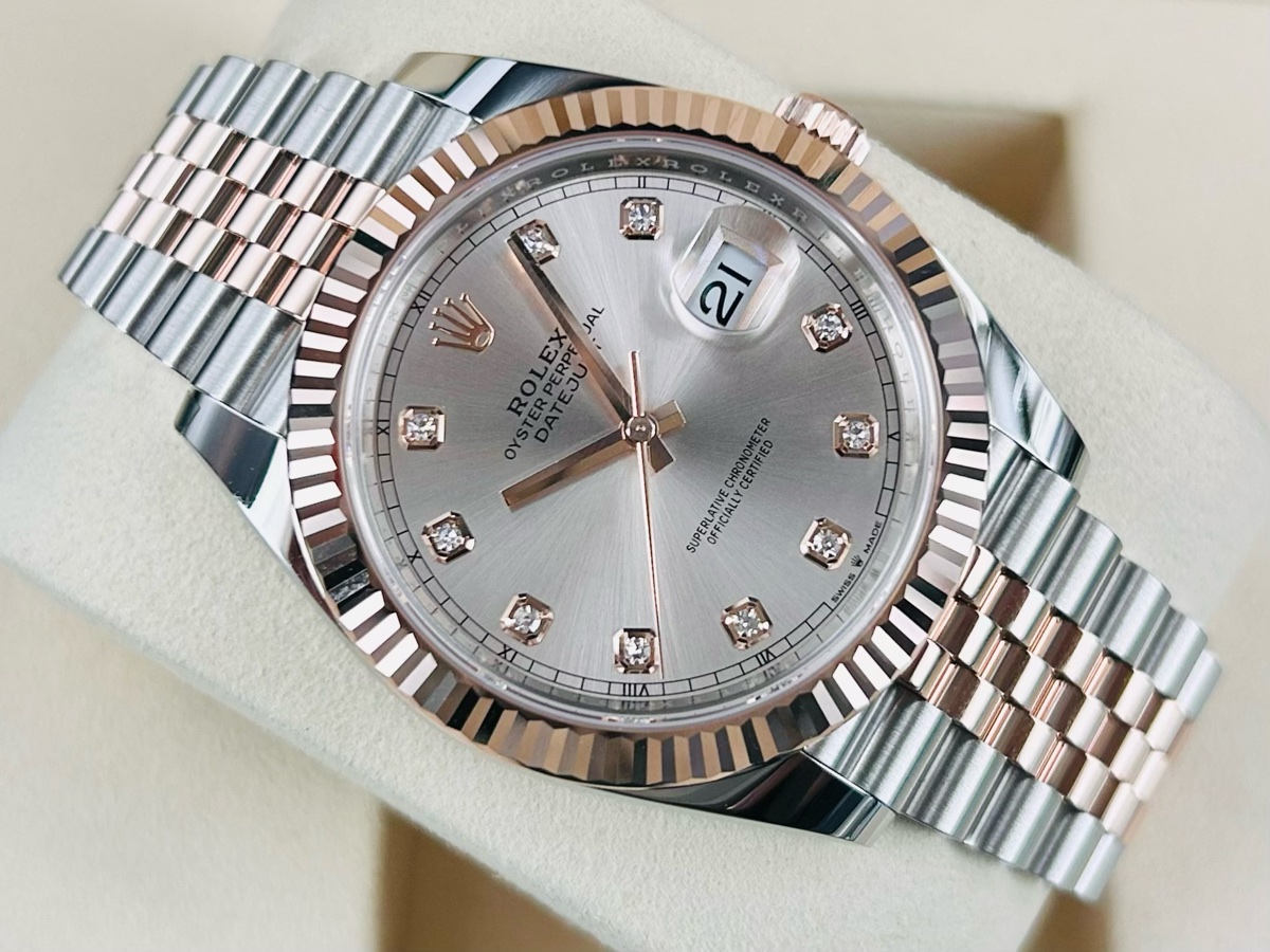 大錶徑 原廠鑲鑽時標 最新款3235新機芯 紀念型五珠鏈節錶帶款 永恒玫瑰金 半金