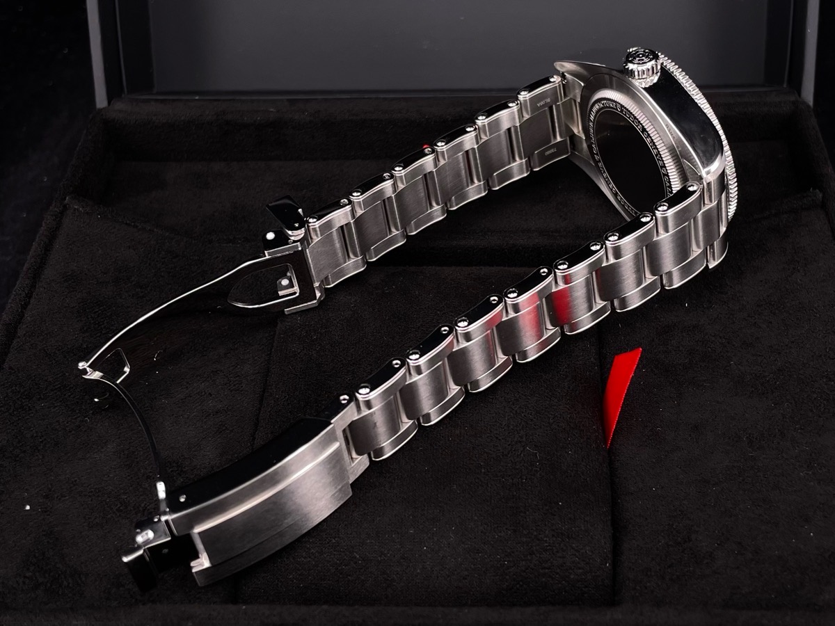 材質: 不鏽鋼材質錶殼、錶帶、摺疊扣、旋入式錶冠 / 雪花形夜光指針、時標 / 不銹鋼雙向旋轉外圈 黑&酒紅陽極氧化鋁錶圈 / 圓拱形藍水晶鏡面 / T-FIT 銷扣
