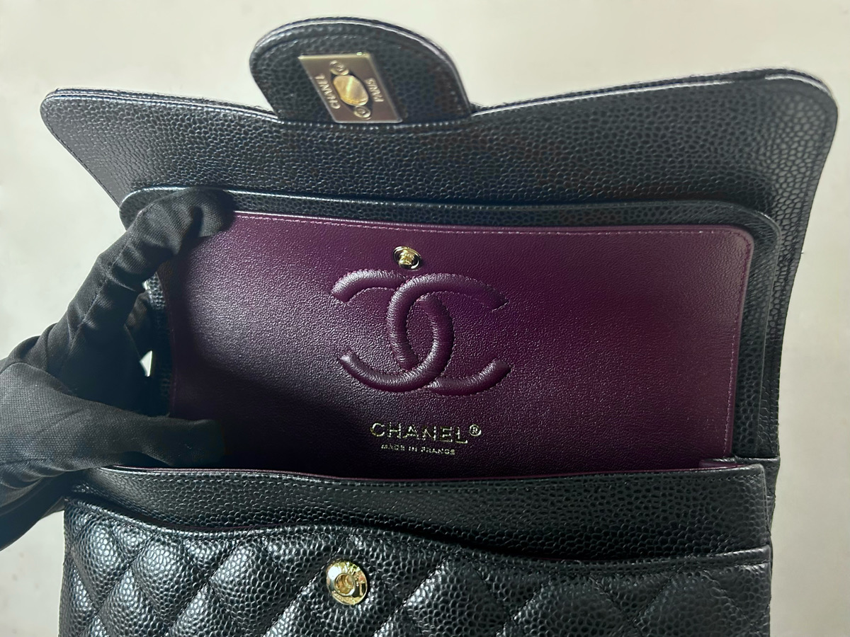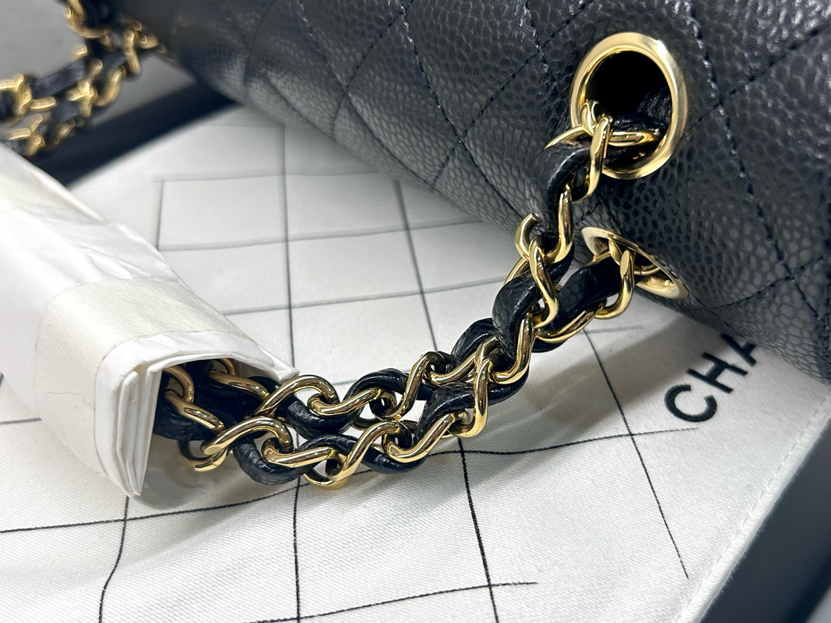 CHANEL 經典CF23 黑色金扣荔枝皮