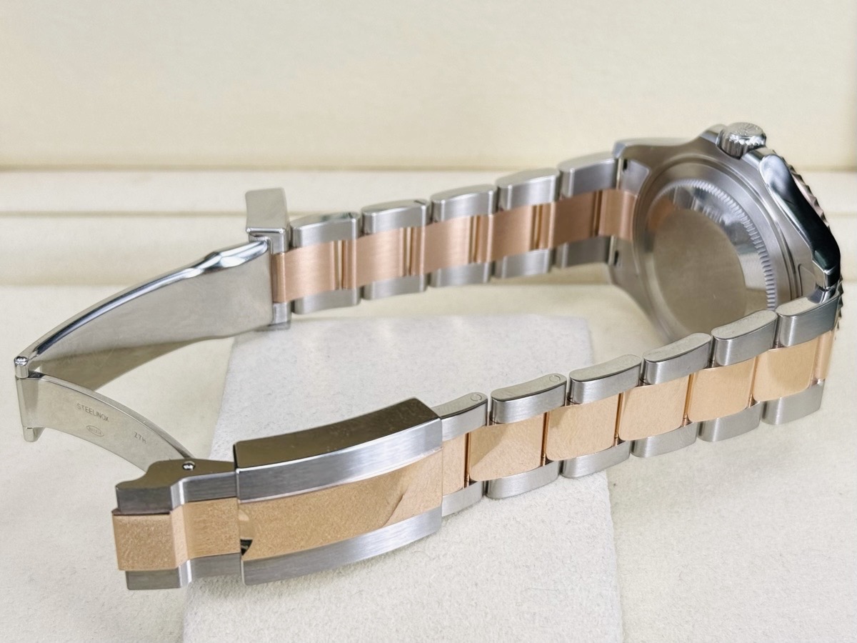 18K玫瑰金+904L精鋼材質錶殼、錶帶、摺疊扣、旋入式錶冠 / 雙向旋轉錶框 / 夜光賓士指針、時標 / 藍寶石水晶玻璃 / 防偽內圈