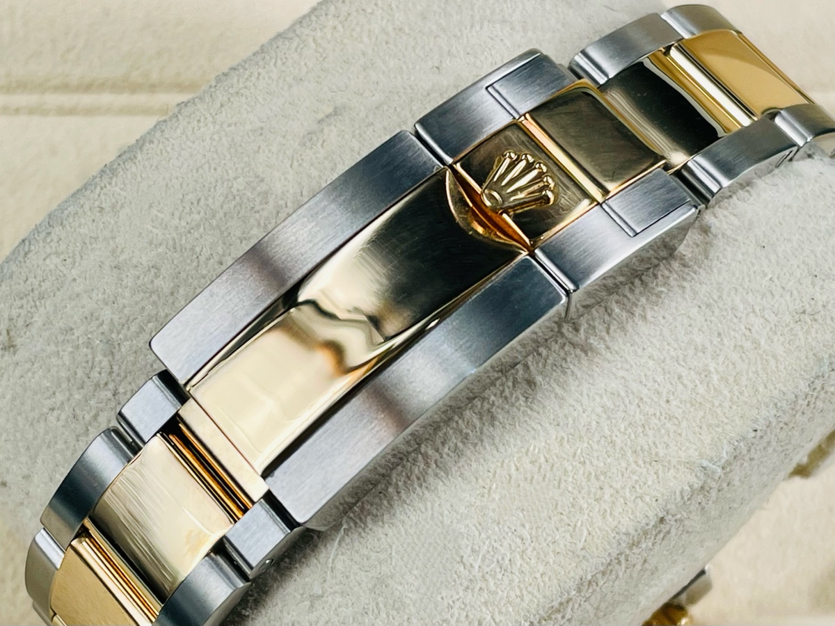 18K黃金+904L不鏽鋼材質錶殼、錶帶、摺疊扣、旋入式錶冠 / Cerachrom黑色陶瓷單向旋轉錶外框 / 夜光賓士指針、時標 / 藍寶石水晶玻璃 / 防偽內圈