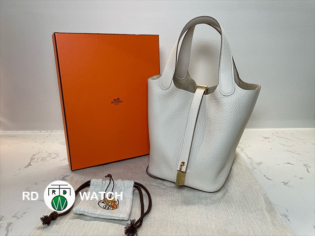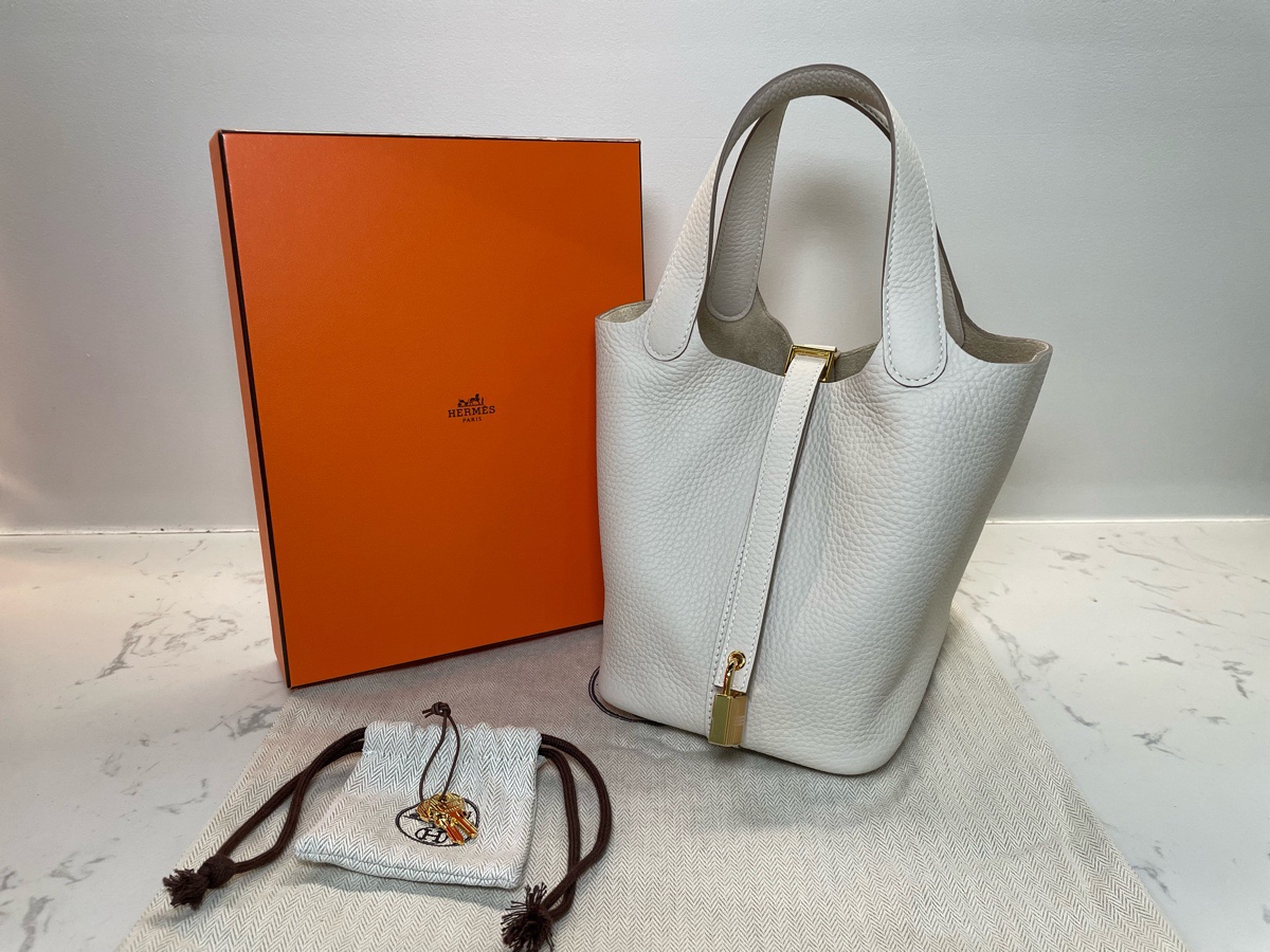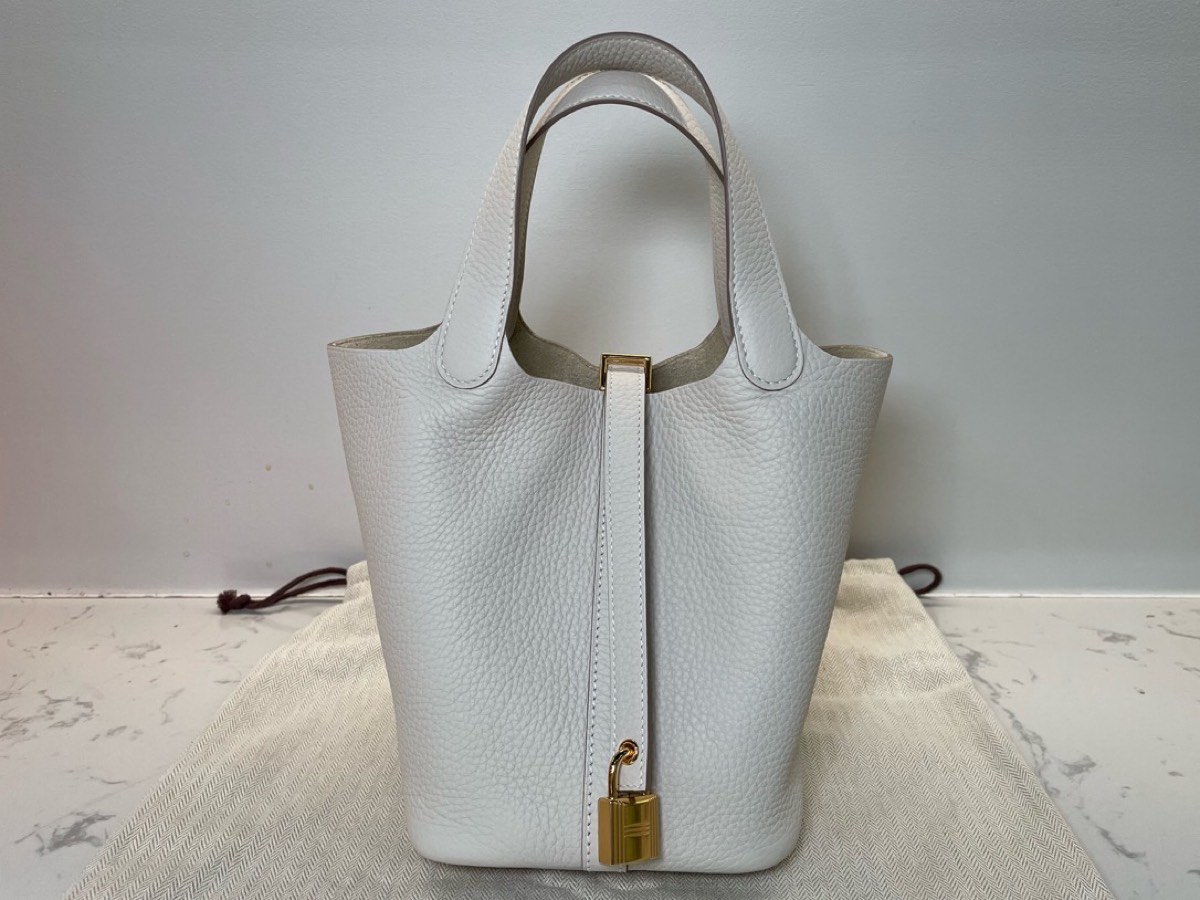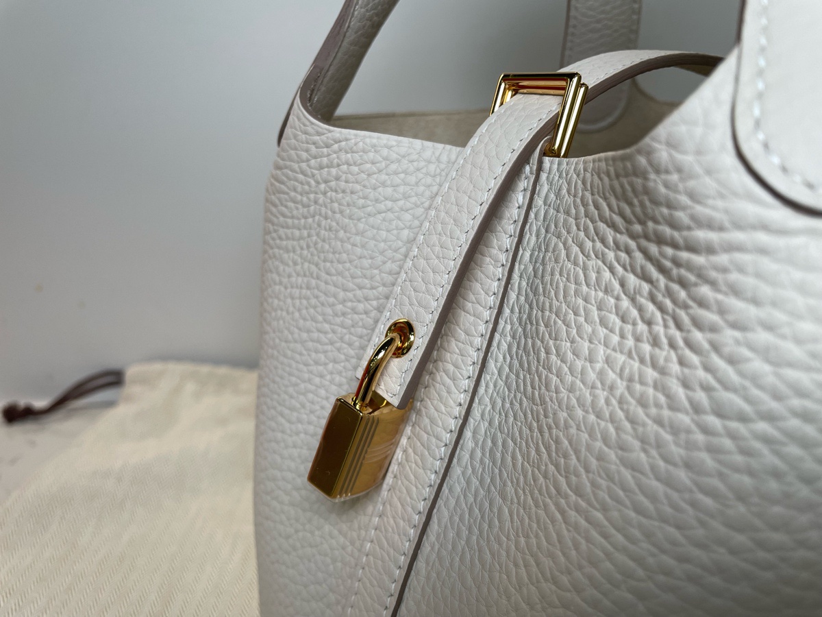 HERMES 愛馬仕 經典 Picotin Lock P18 菜籃子 奶昔白 隨性又好看 牛皮手提鎖頭包 K刻