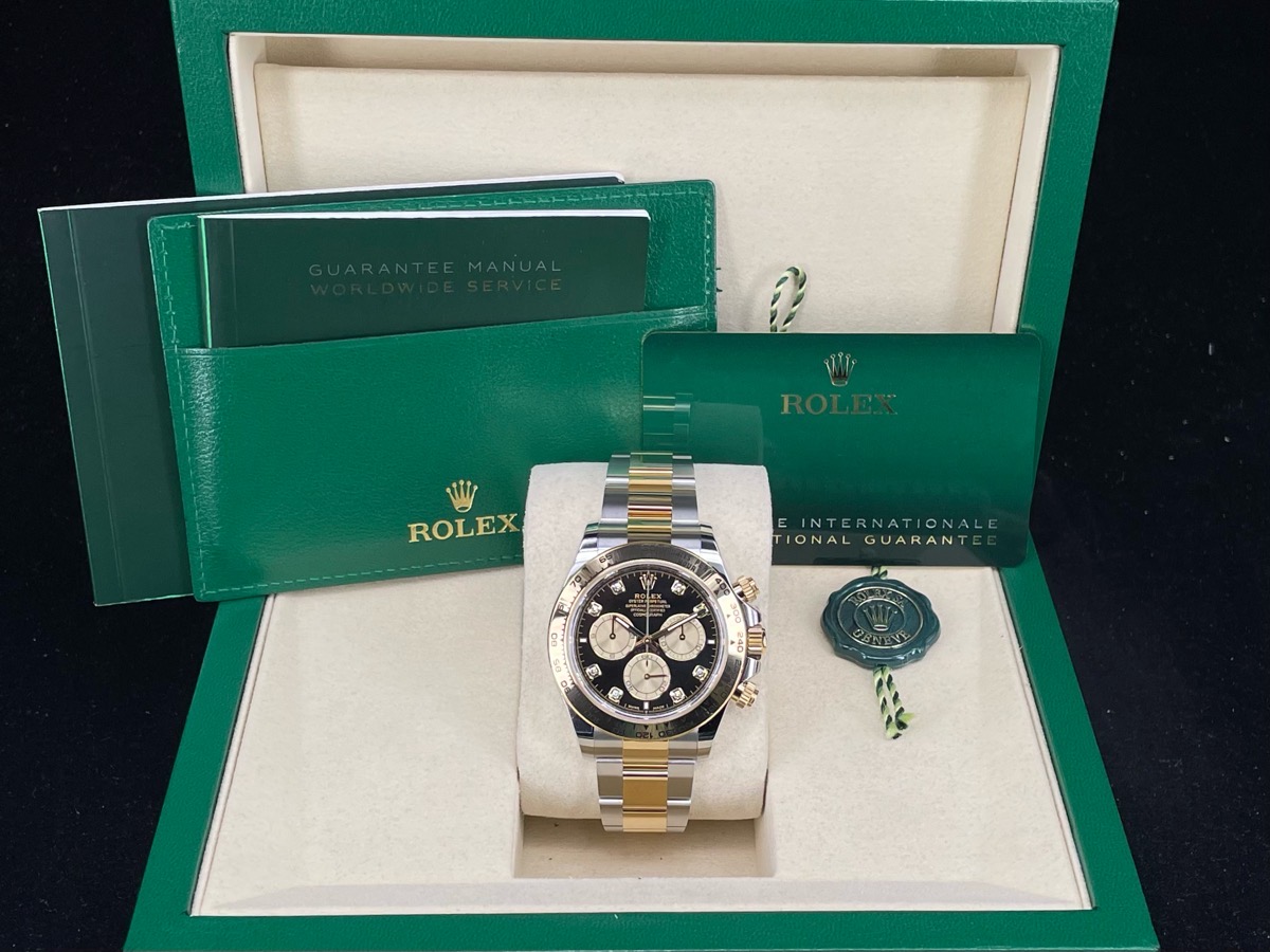 ROLEX 勞力士 Daytona 126503G 最新款4131機芯 宇宙計型 不鏽鋼及18K黃金半金款 鑲鑽亮黑色及金色錶面 原廠鑲嵌鑽石時標 迪通拿